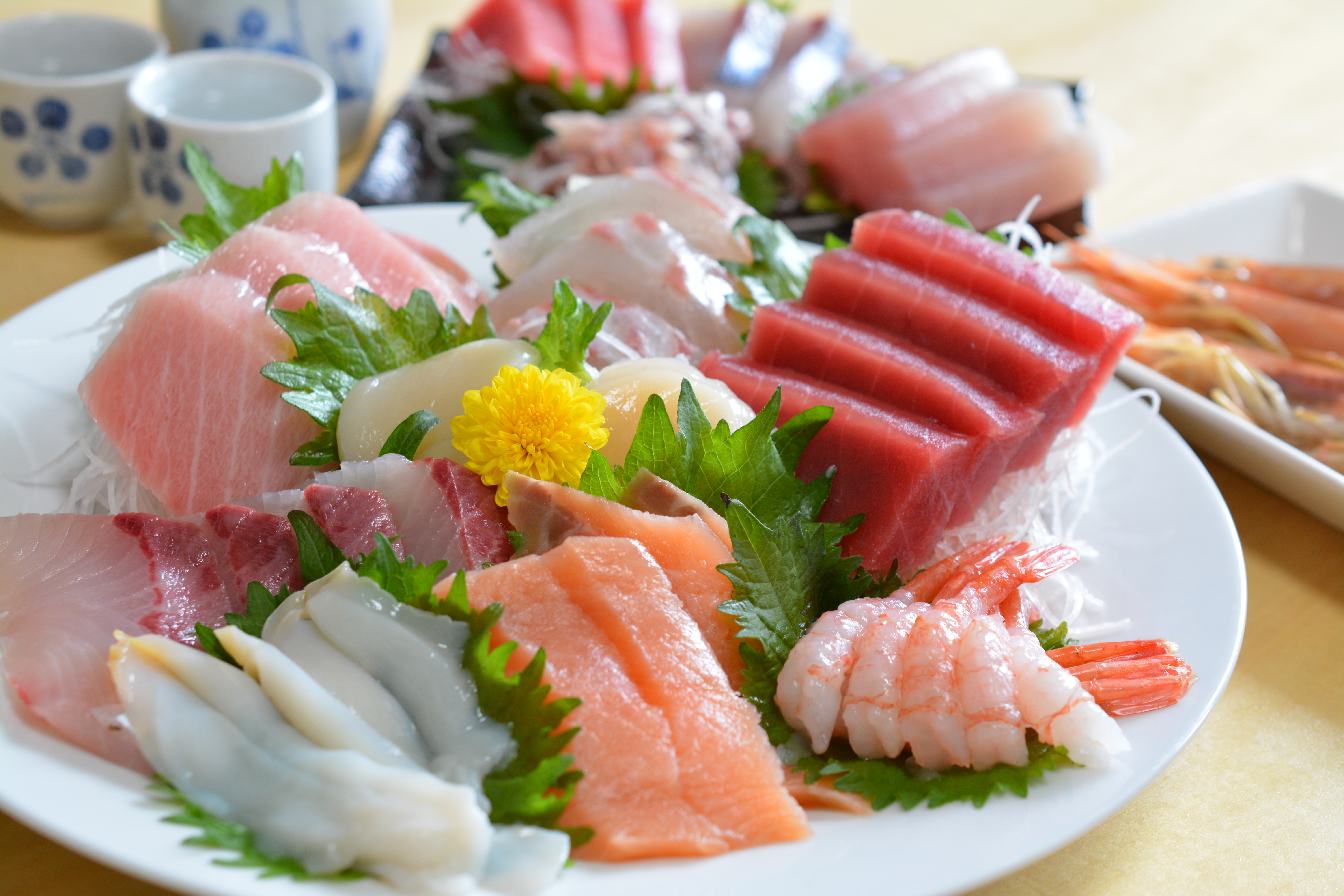 お刺し身の盛り合わせ・刺し盛り・鮮魚・お造り・お刺身の盛り合わせ・ホタテ・真鯛・サーモン・マグロ・甘エビ・甘えび・宴会