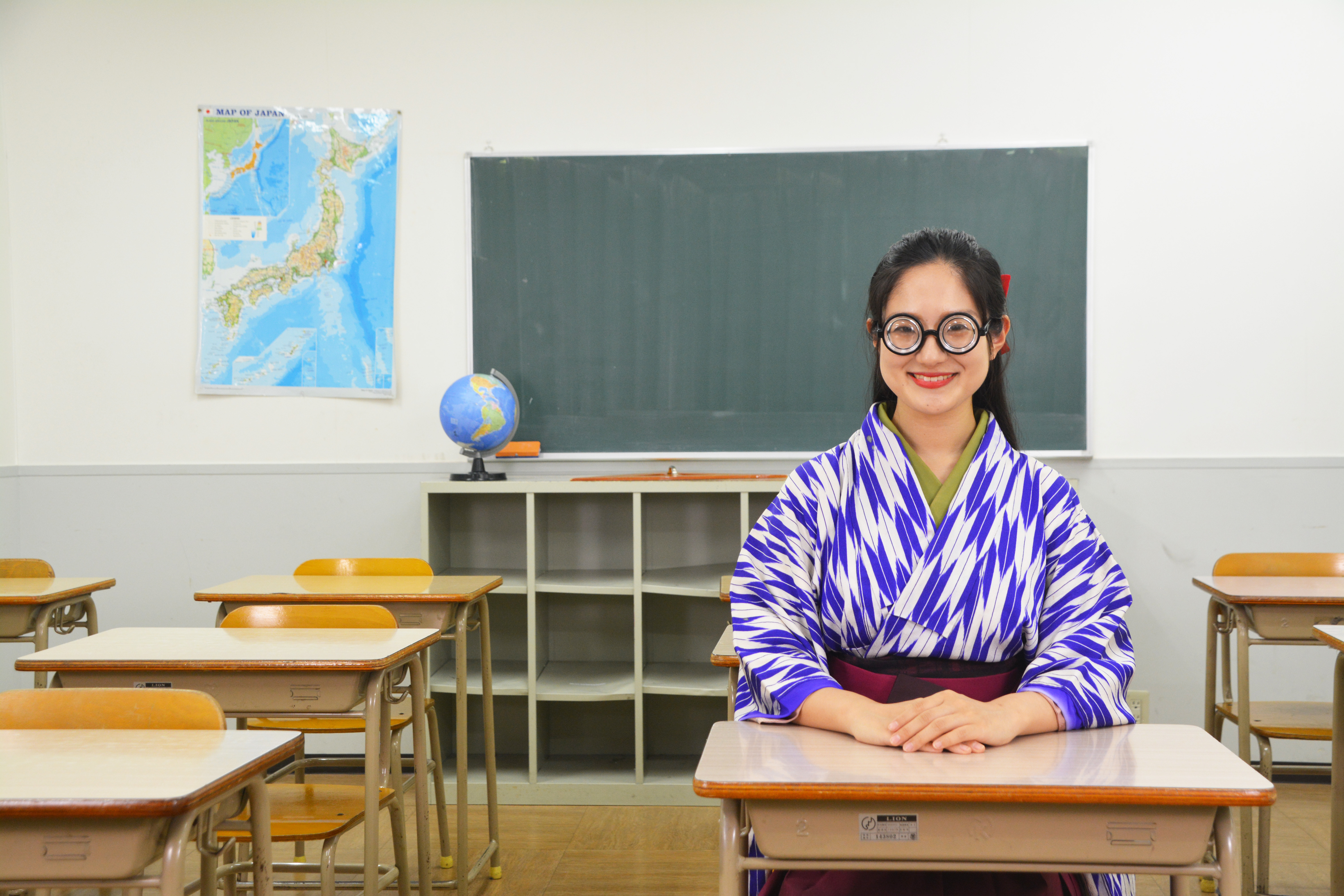 瓶底メガネ・瓶底眼鏡(めがね)・ガリ勉・勉強・成績優秀・優等生・天才少女・秀才・メガネ女子・受験・合格祈願・袴姿・女学生・女子学生・昭和レトロ・大正ロマン・授業・受験勉強・学習塾・学校・試験・テスト・丸メガネ・女学園・女子学園・やるき・ヤル気