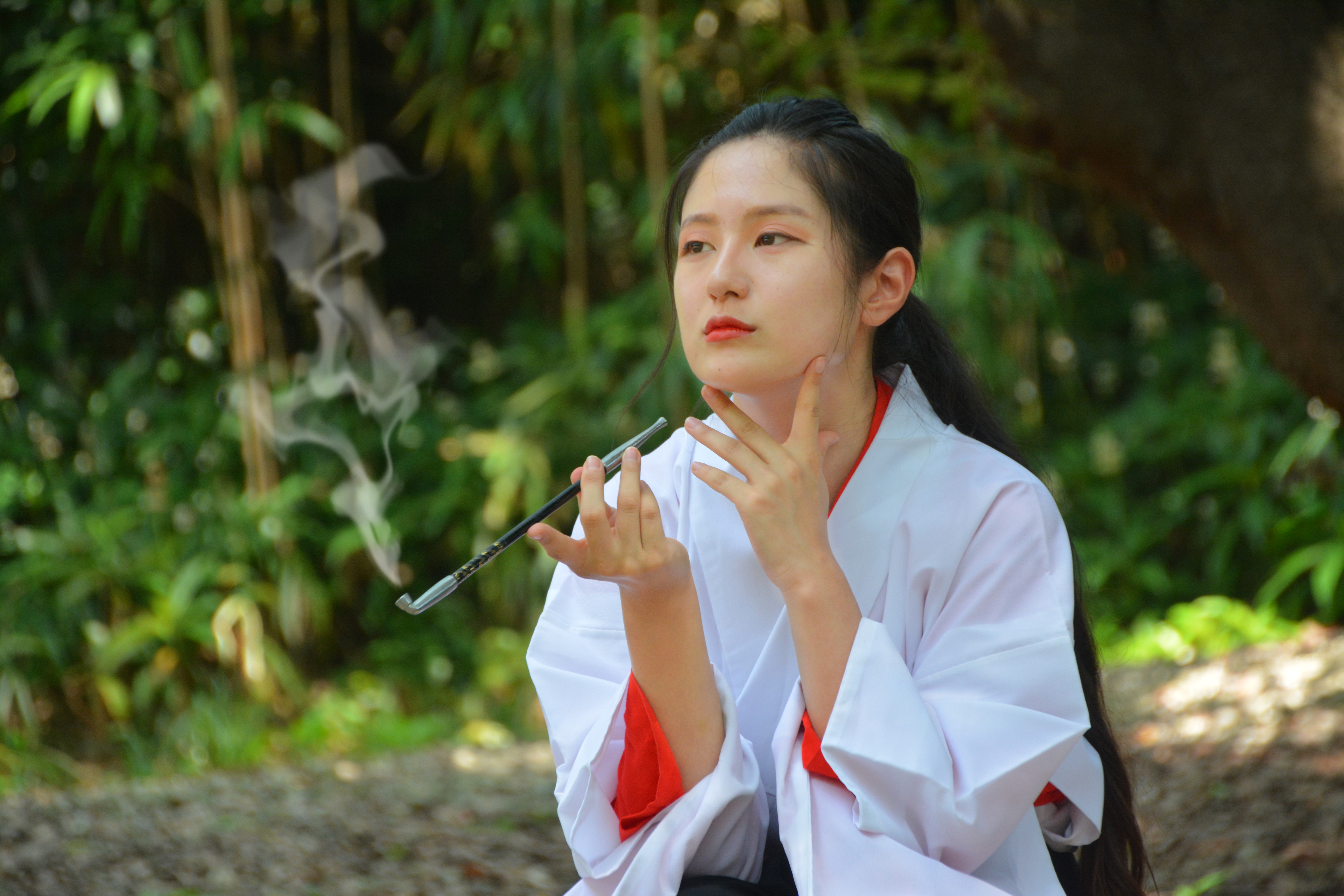 きせる・女侍・武士・戦闘・戦い・バトル・江戸時代・時代劇・凛とした・キセルタバコ・キセル煙草(たばこ)・休憩・休息・一休み