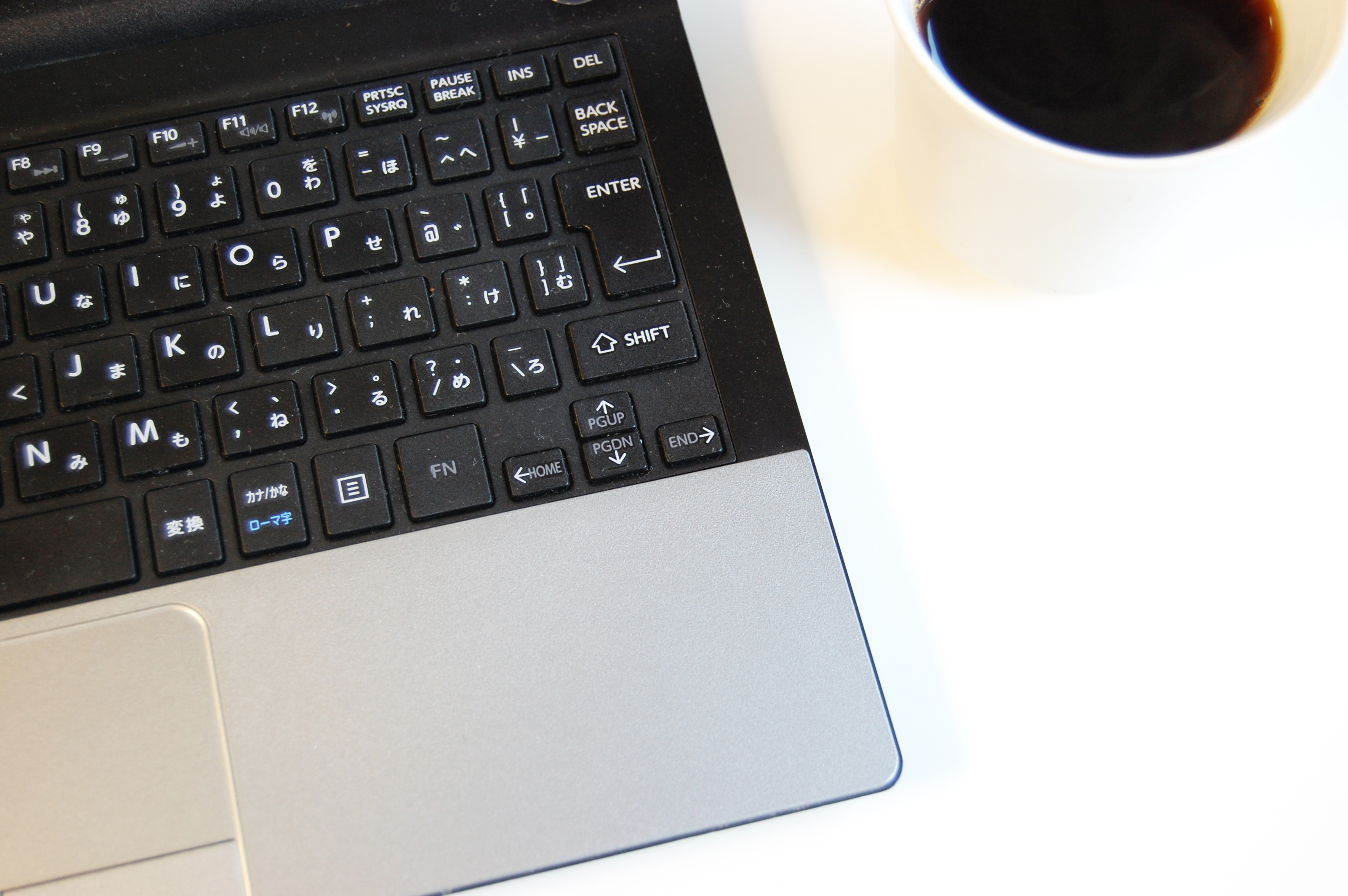 ノートパソコン、ノートPC。珈琲