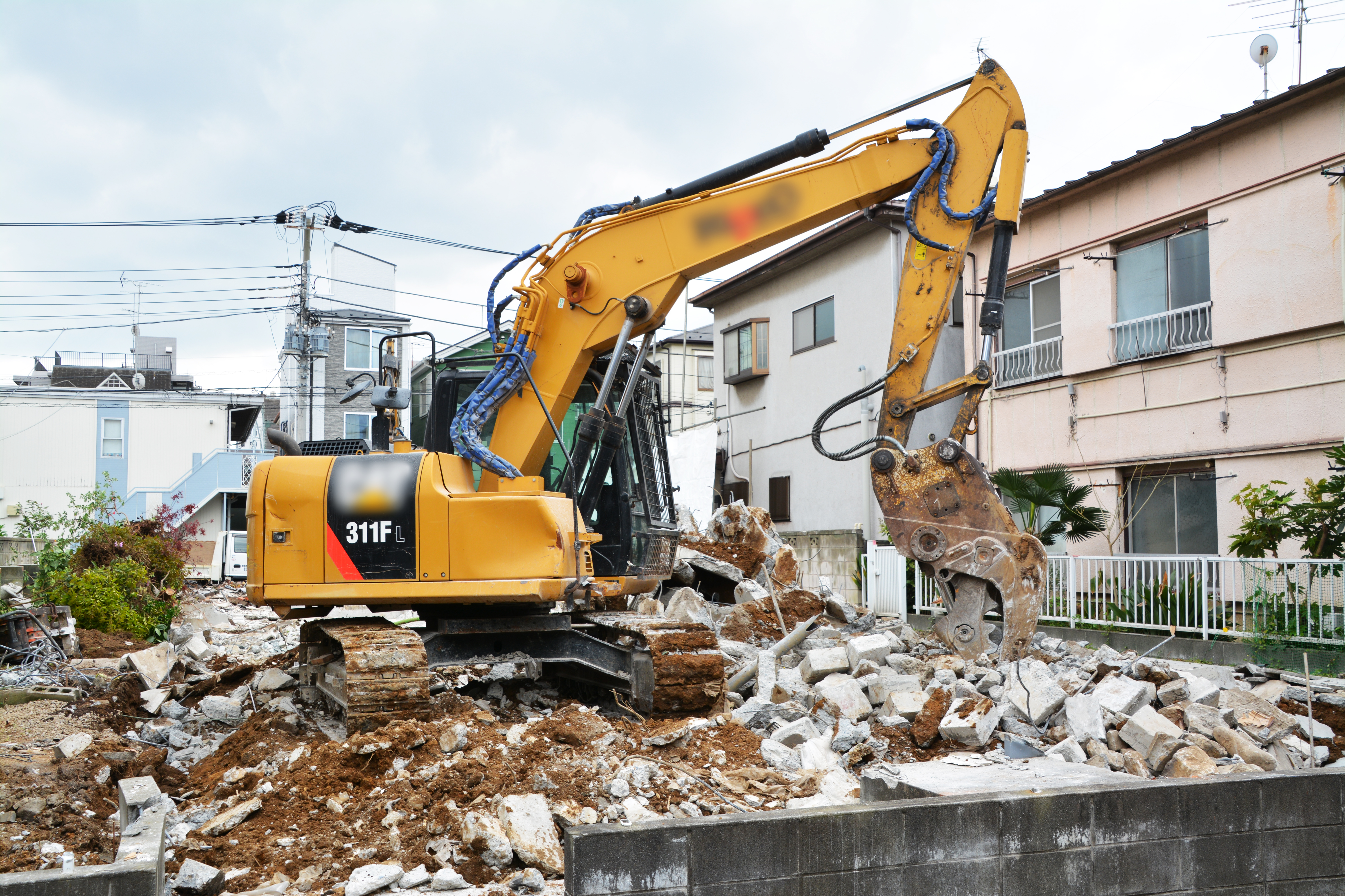 住宅解体・家屋解体・取り壊し・油圧ショベル・建設機械・キャタピラー・工事・肉体労働・大工さん・空き家・重機・解体工事・ユンボ、