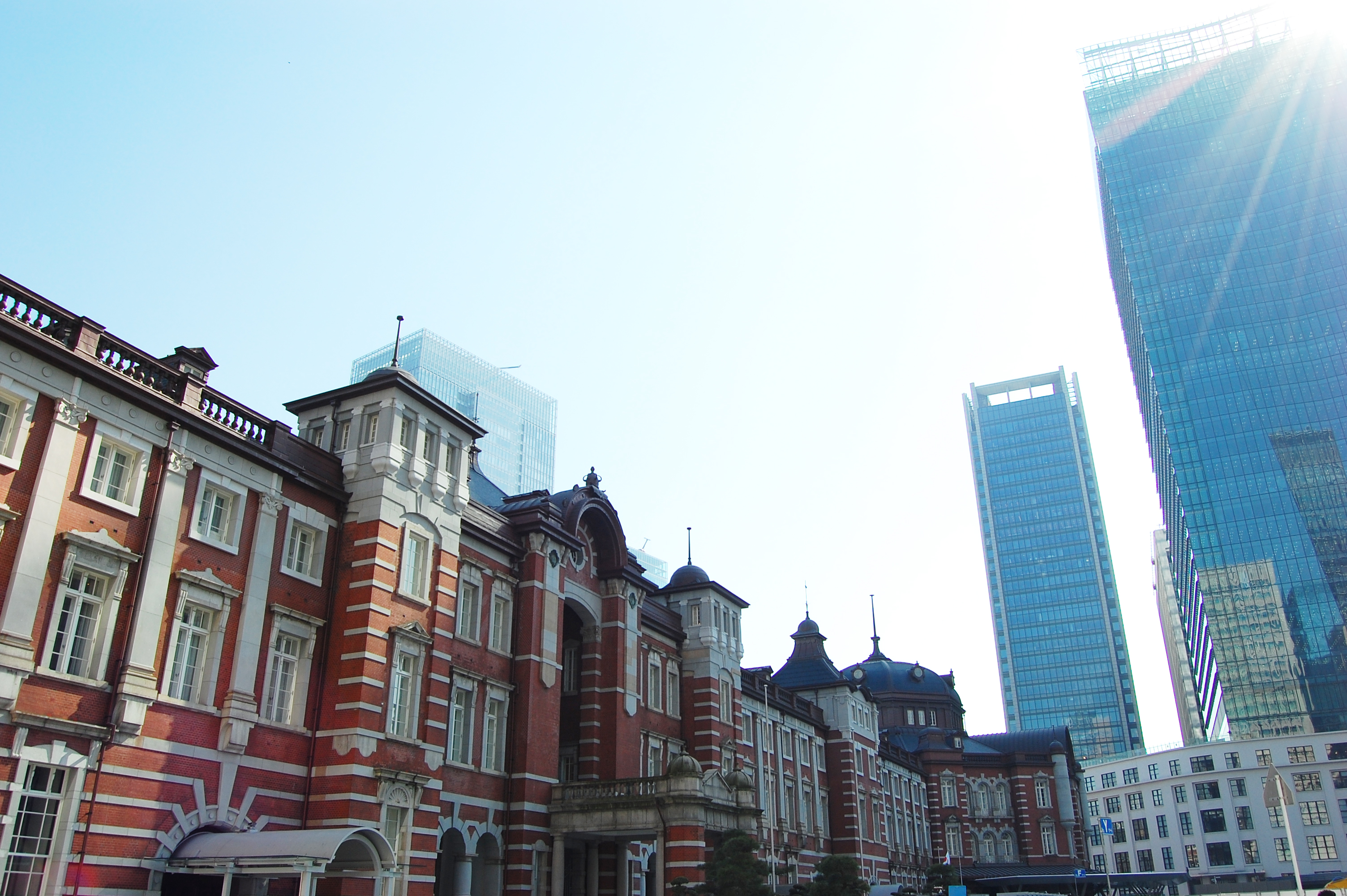 ビルから光が差し込む、東京駅