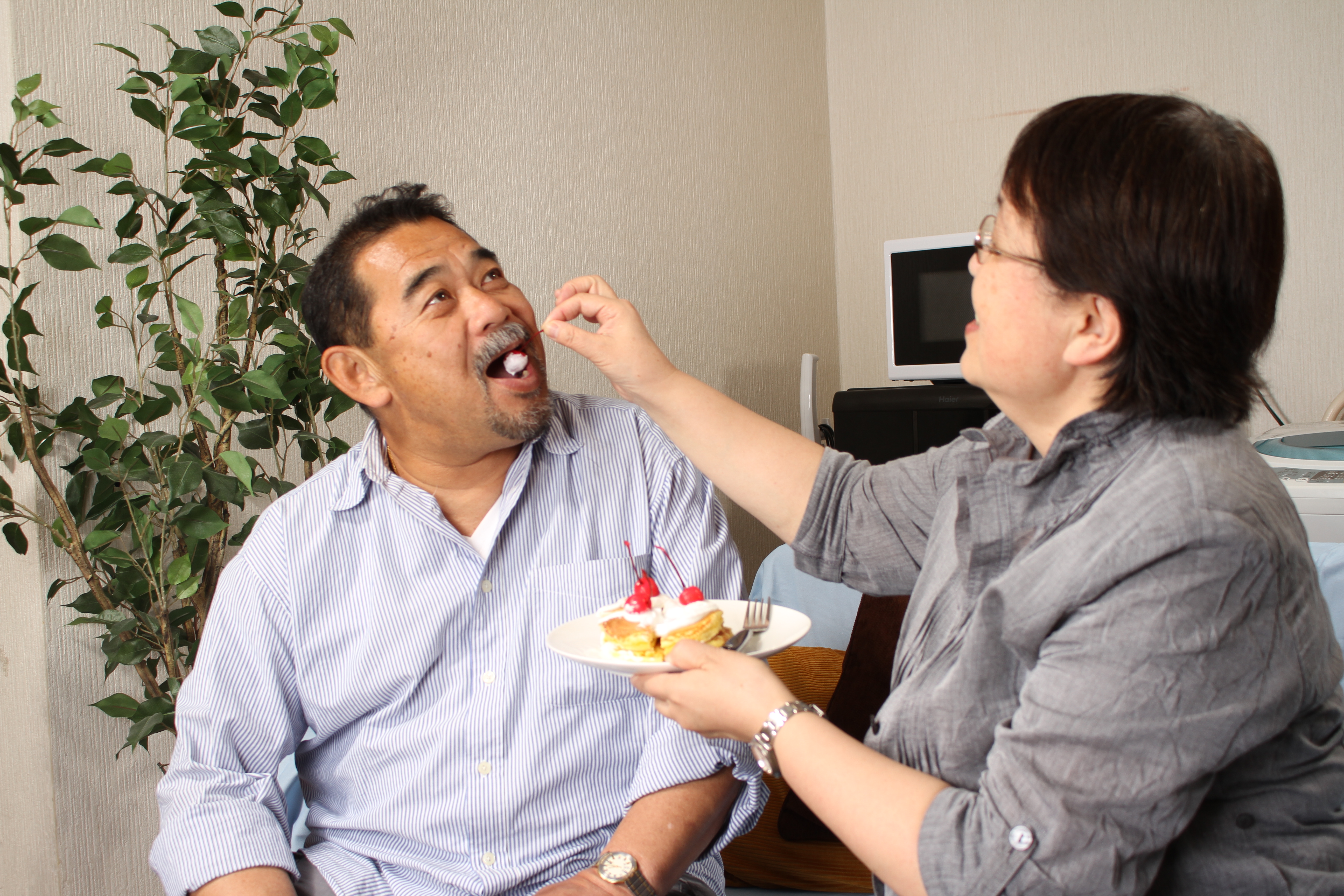 夫婦、仲良し両親、恋人、おじさん、おばさん、おばはん、おっさん、シニア、ホームパーティー、誕生日ケーキ