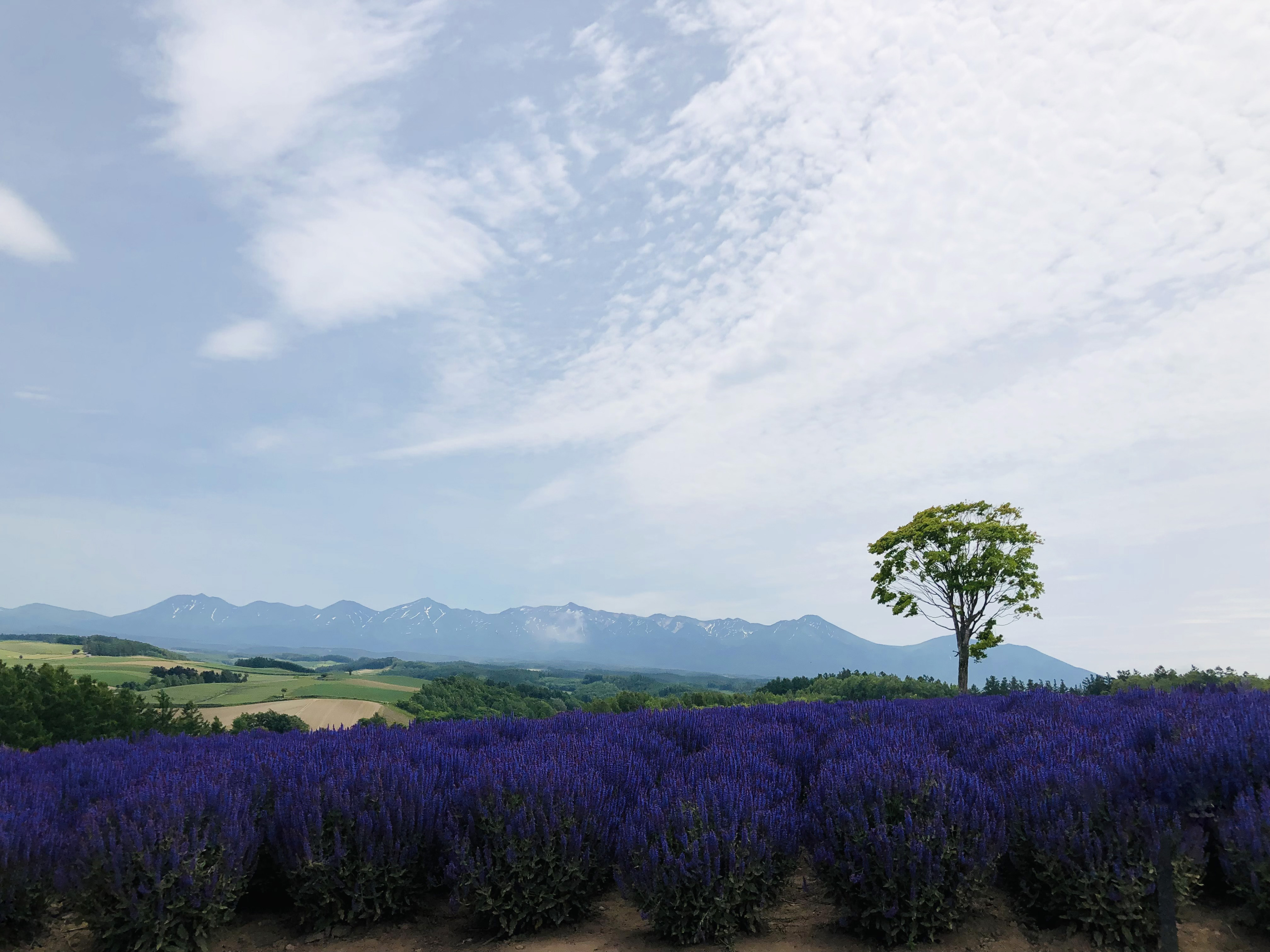 見晴らしのいい大地・広大・北海道・函館・大自然・リラックス・パノラマビュー・見はらし・爽快・絶景・1本・サルビア