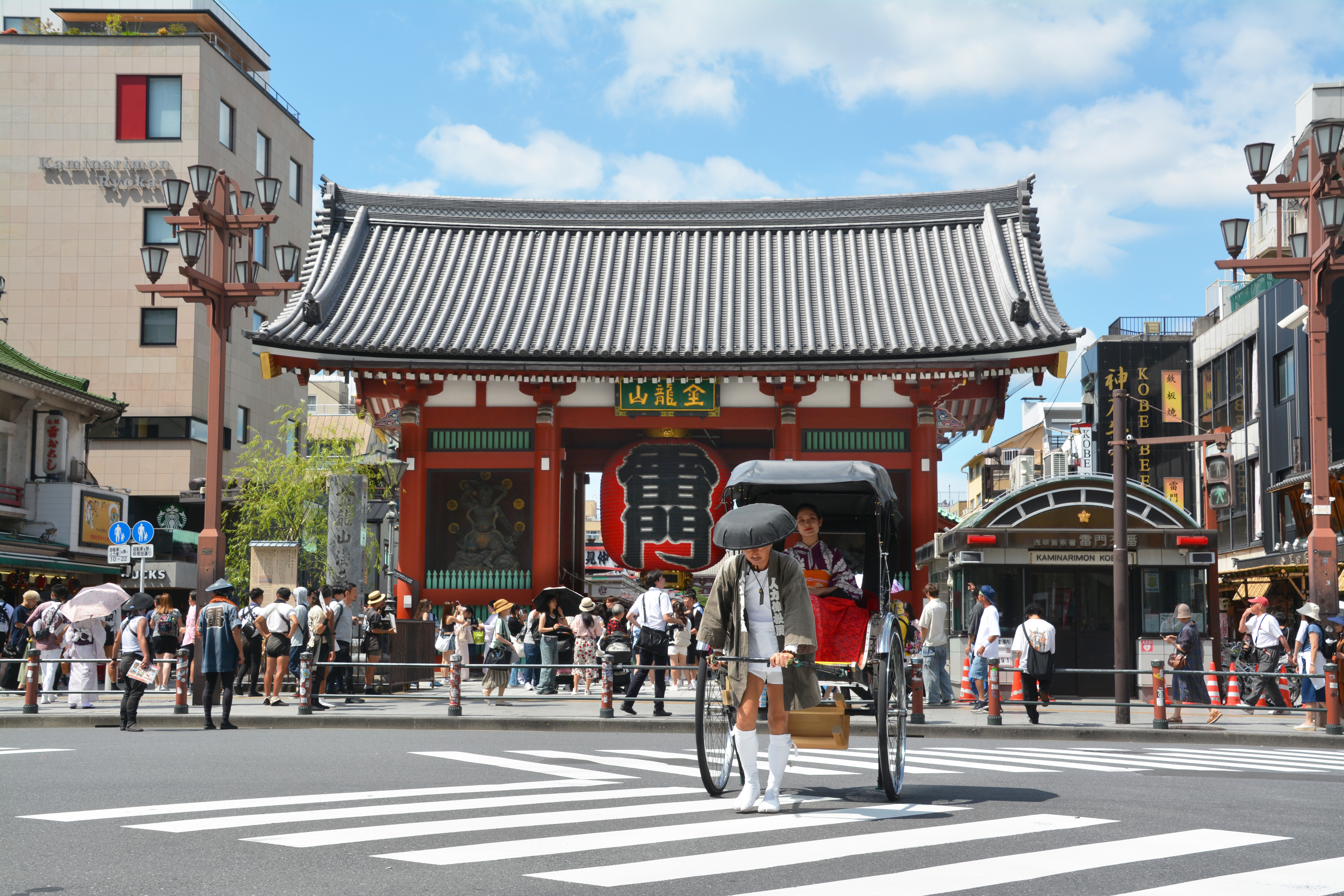 浅草、観光地、昭和レトロ、大正ロマン・笠・着物・和服・移動・下町・江戸・東京・風情・庶民・昭和ノスタルジー・ノスタルジック
