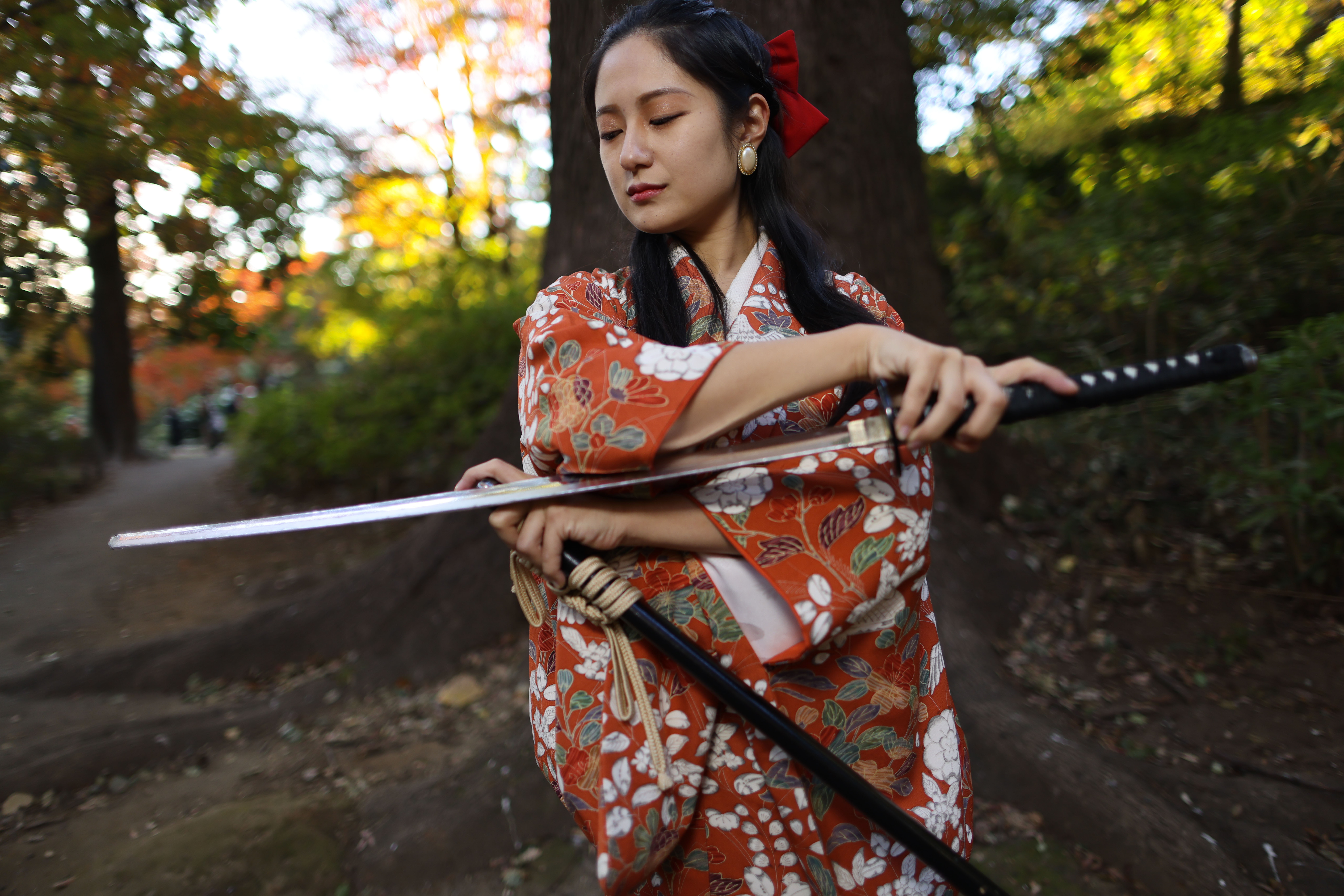 日本刀・和装・妖艶・武士・戦闘・戦い・バトル・殺陣・殺気・侍・美女・美魔女・コスプレ・微笑み・ほほえみ・不敵な笑み・決戦・決闘・江戸時代・時代劇