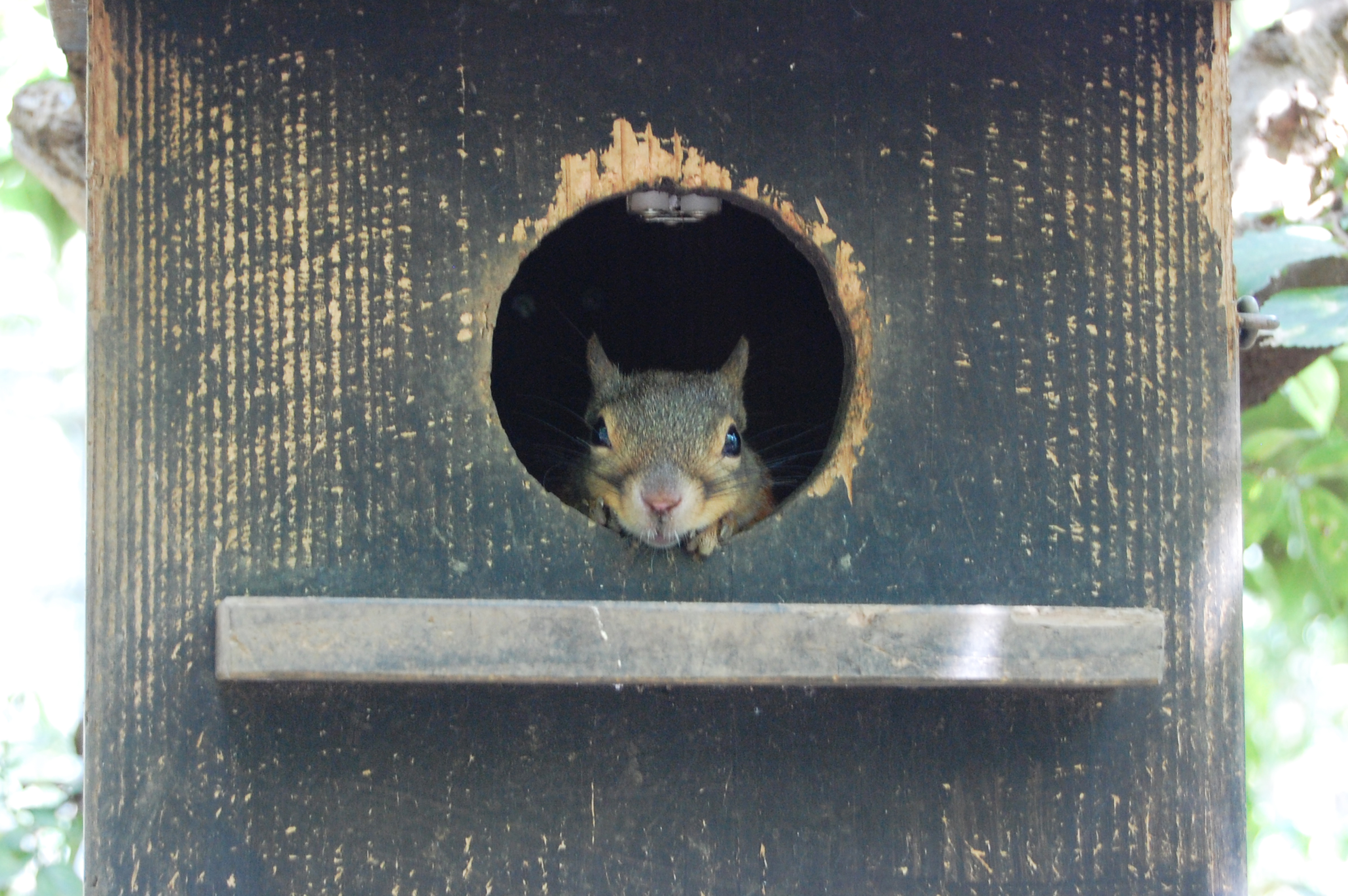 木の巣からひょっこり顔を出すリス2