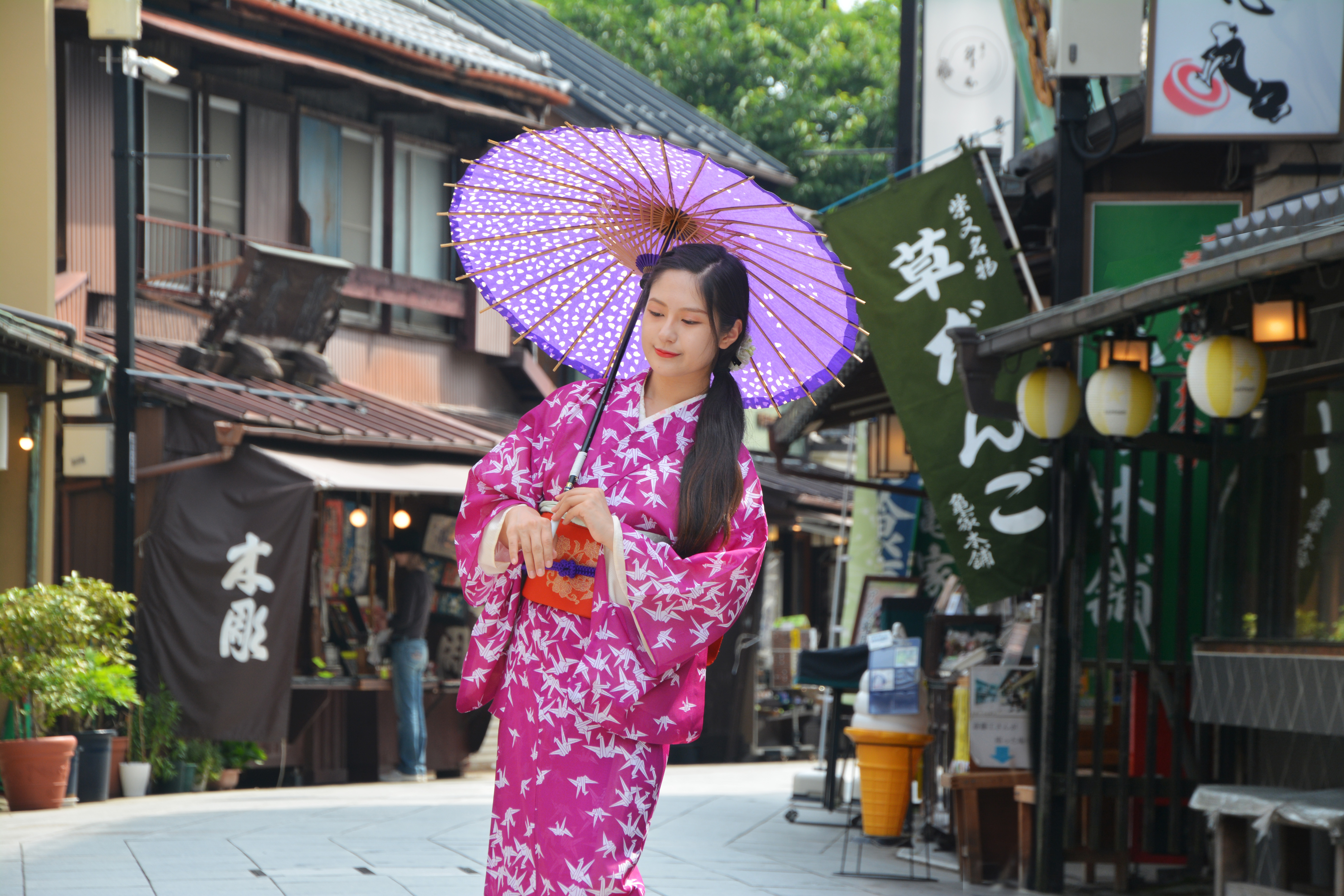 昔ながらの商店街・葛飾柴又・観光地、昭和レトロ、大正ロマン・和服・下町情緒・東京・風情・庶民・街探訪・江戸っ子・庶民・下町の商店街・京都・美人・美女・大和撫子(大和なでしこ)・清純派・和傘・老舗・昭和ノスタルジー・ノスタルジック