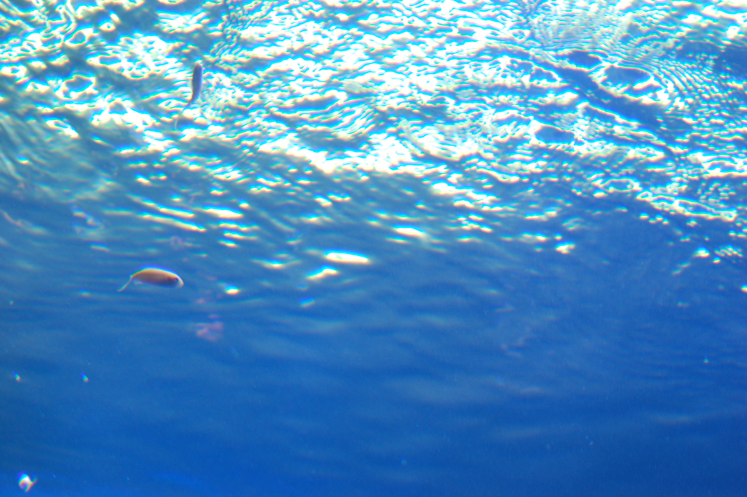 海の下から見上げた水面、スキューバダイビング