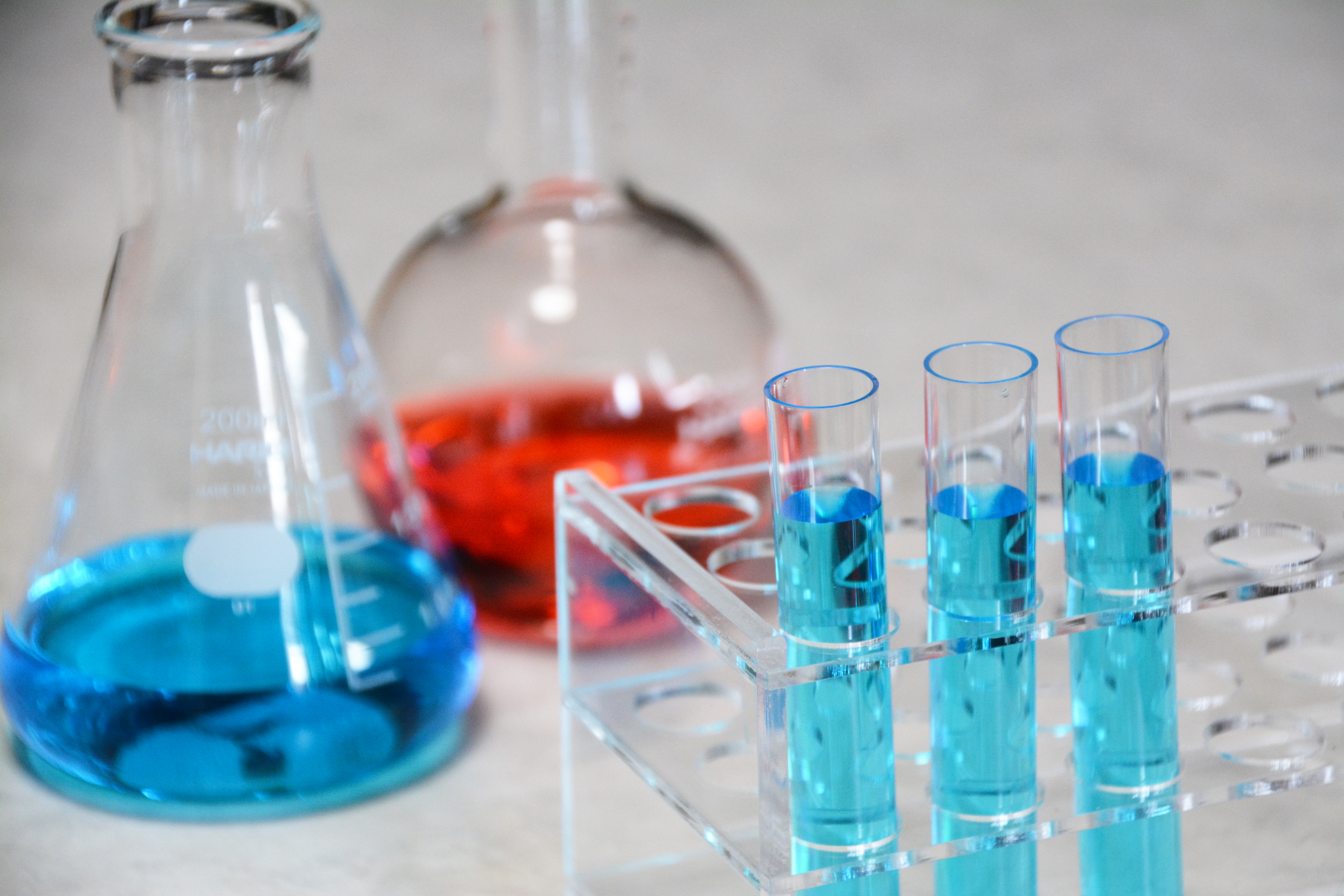 試験管・フラスコ・ビーカー・理系大学生・理科実験・試験管・液体・不純物チェック・新薬開発・基礎研究・研究開発・研究室・ラボ・新型ウィルス・免疫細胞・ワクチン・医薬品・医療・勉強・試験・科学・化学・生命・微生物・