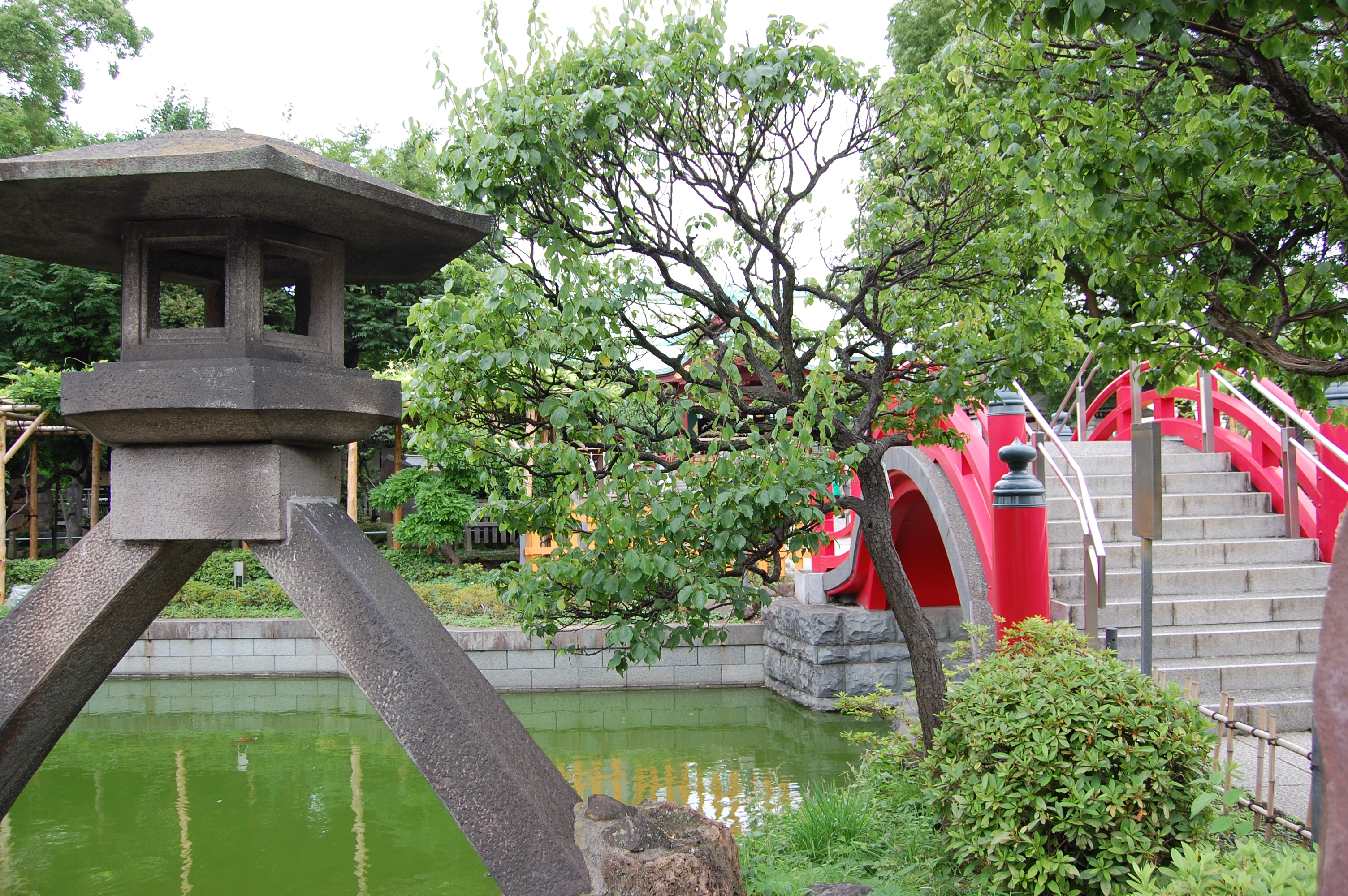 神社・日本庭園・赤い橋02