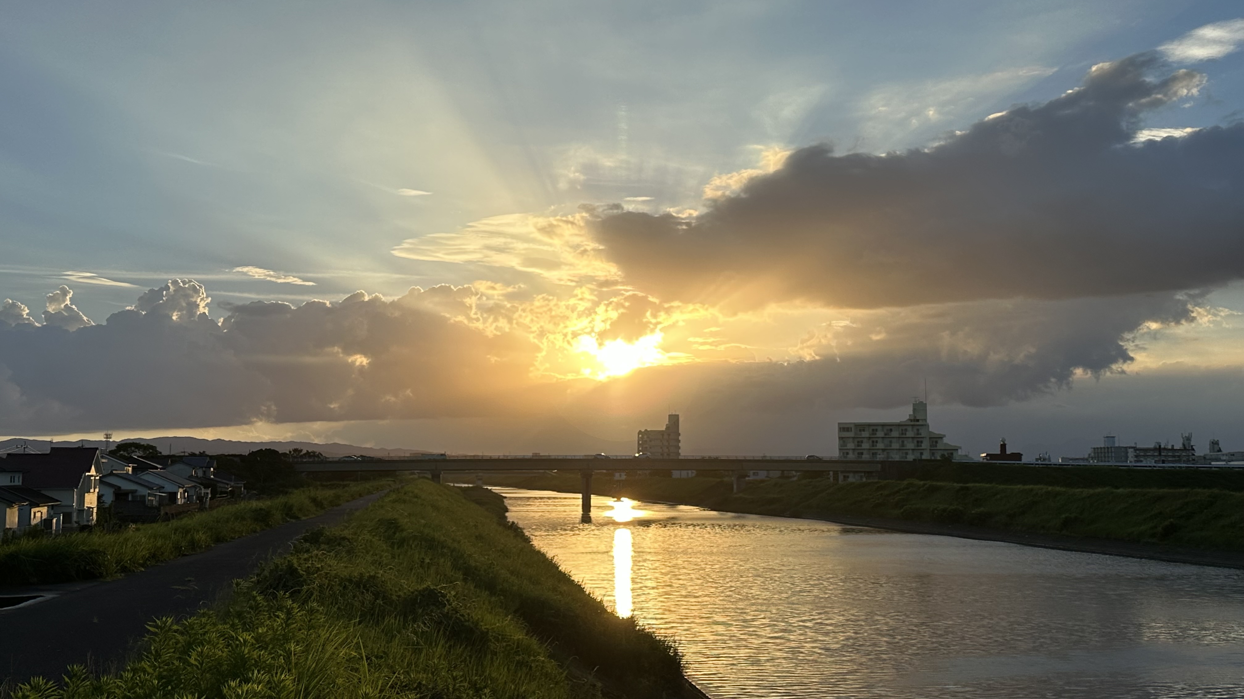 自然現象・天体・天気・神秘的・天空・雲・光と影・光芒・薄明光線&夕暮れ彩雲・夕日・夕陽・夏の夕空・夕陽の道・陽射し・日差し・スピリチュアル・開運・幸運・幸福・運命・導き・奇跡・希望の光