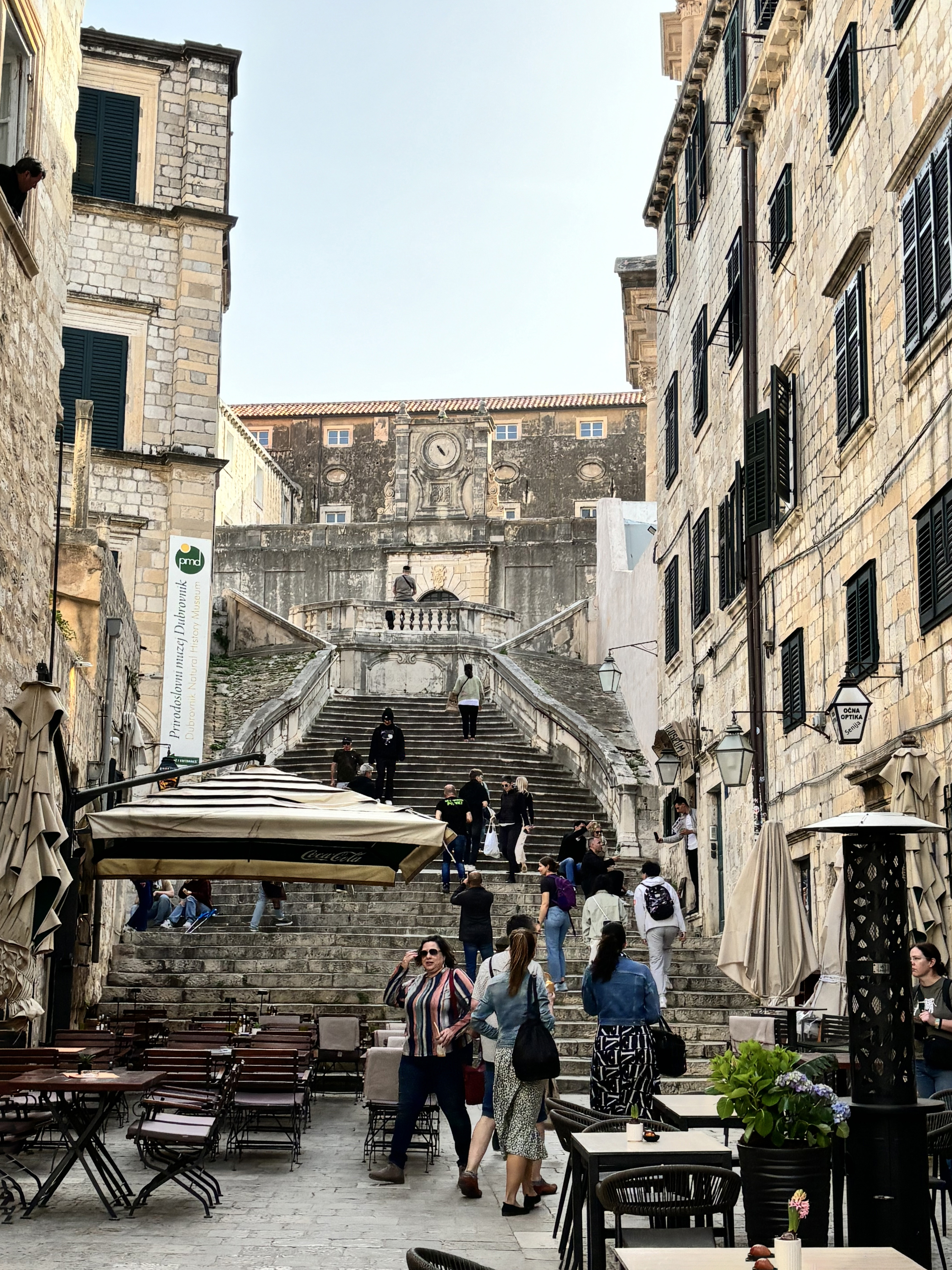 ドゥブロヴニク_クロアチア・西洋・ヨーロッパ風景・欧米・出勤・勤労・労働・日々・生活・坂道・ビル・挟間・煉瓦(レンガ)・オープンテラス・散策・苦労・女性
