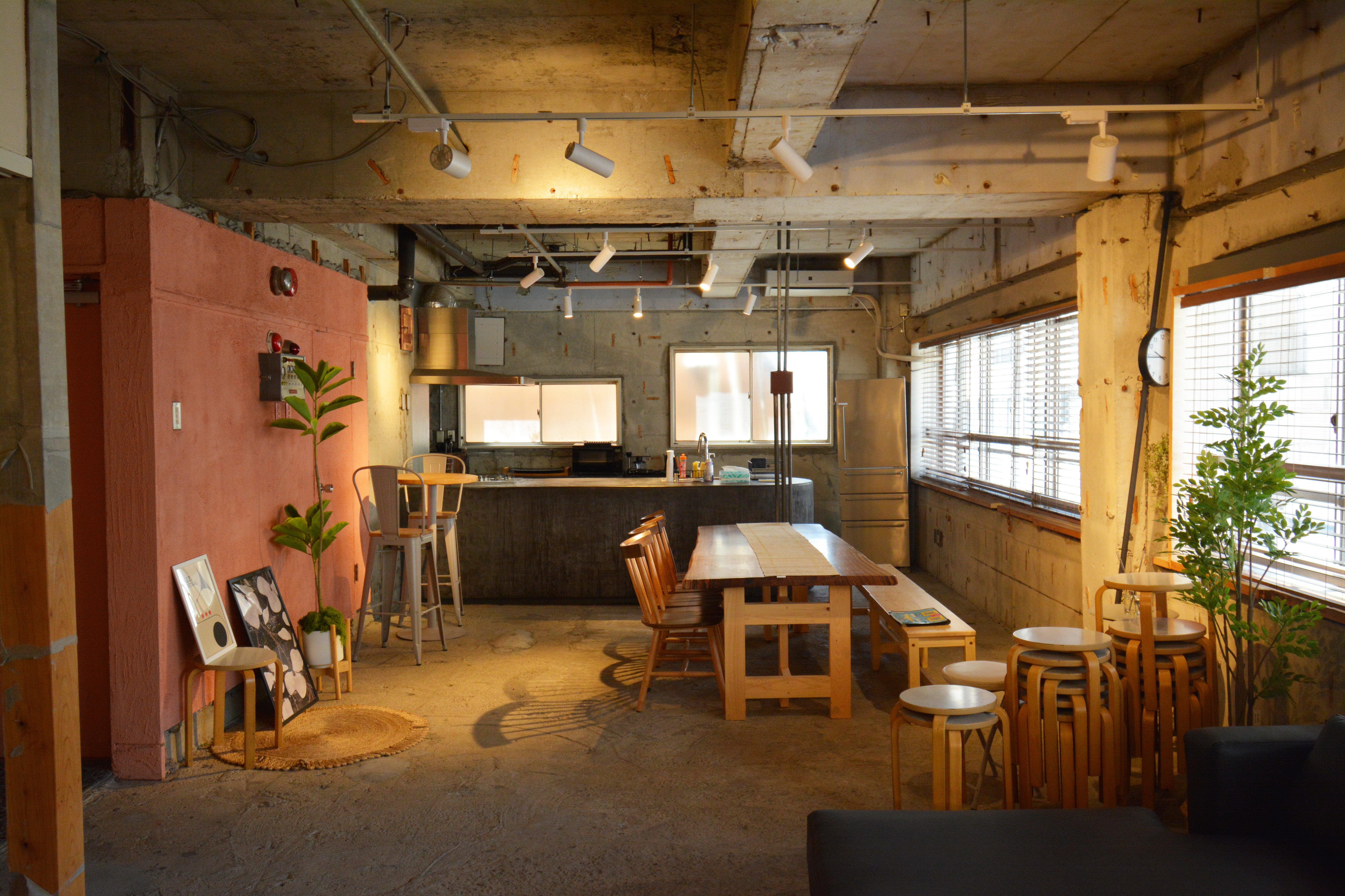お洒落・オシャレ・飲食店・予約・デート・打ち合わせ・ランチ・間接照明・2次会・2次会・二次会・喫茶店・貸切パーティー・机とテーブル・椅子(いす、イス)・オフ会・飲食店・空席・座席・お食事・予約・デート・スケルトン天井・剥き出しの天井