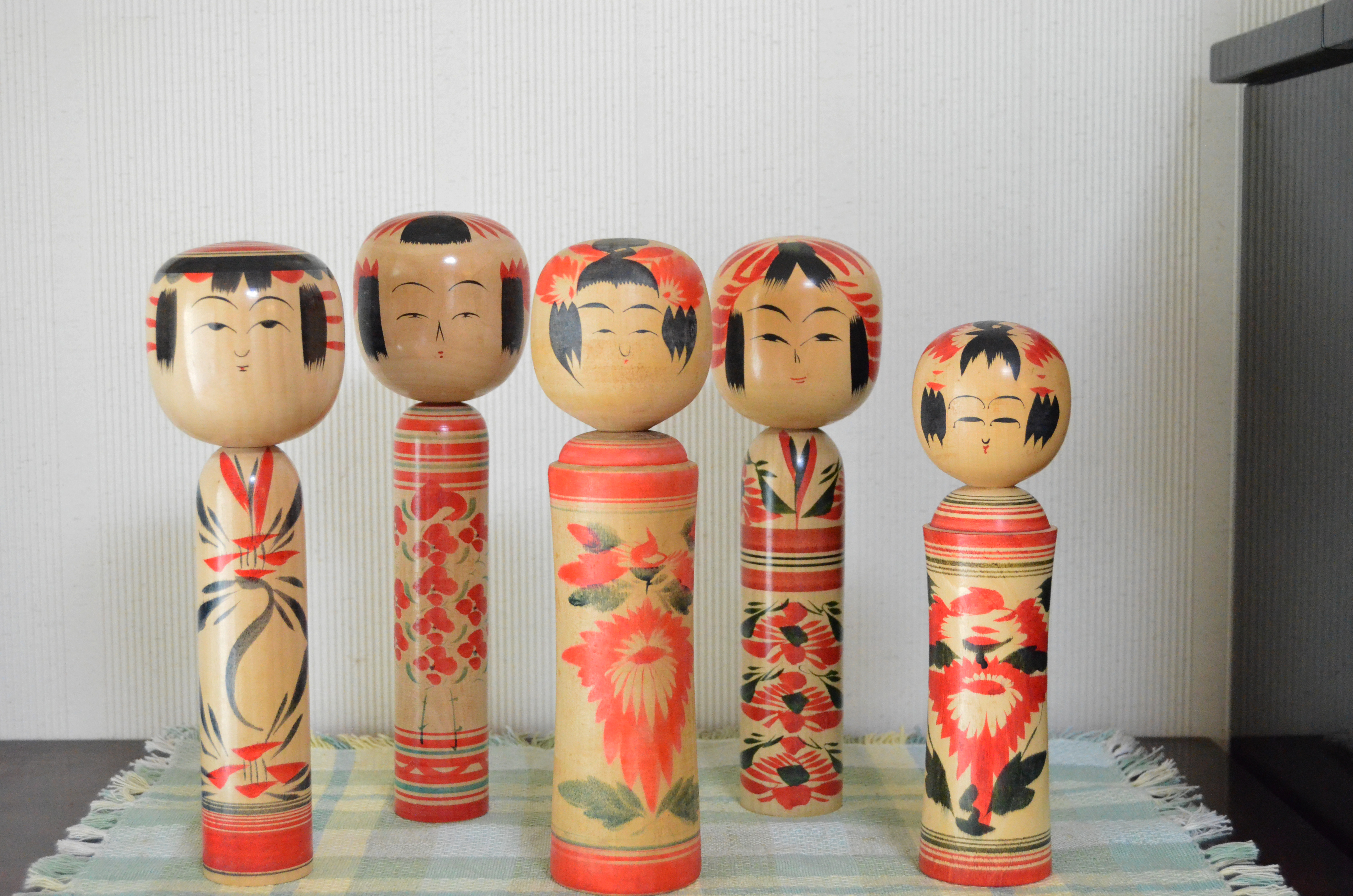 昭和レトロ・和風・伝統工芸品・民芸品・コケシ・お土産・郷土品・木彫り細工・人形・大家族・集団・密集・少子化・大勢・村人・田舎もん