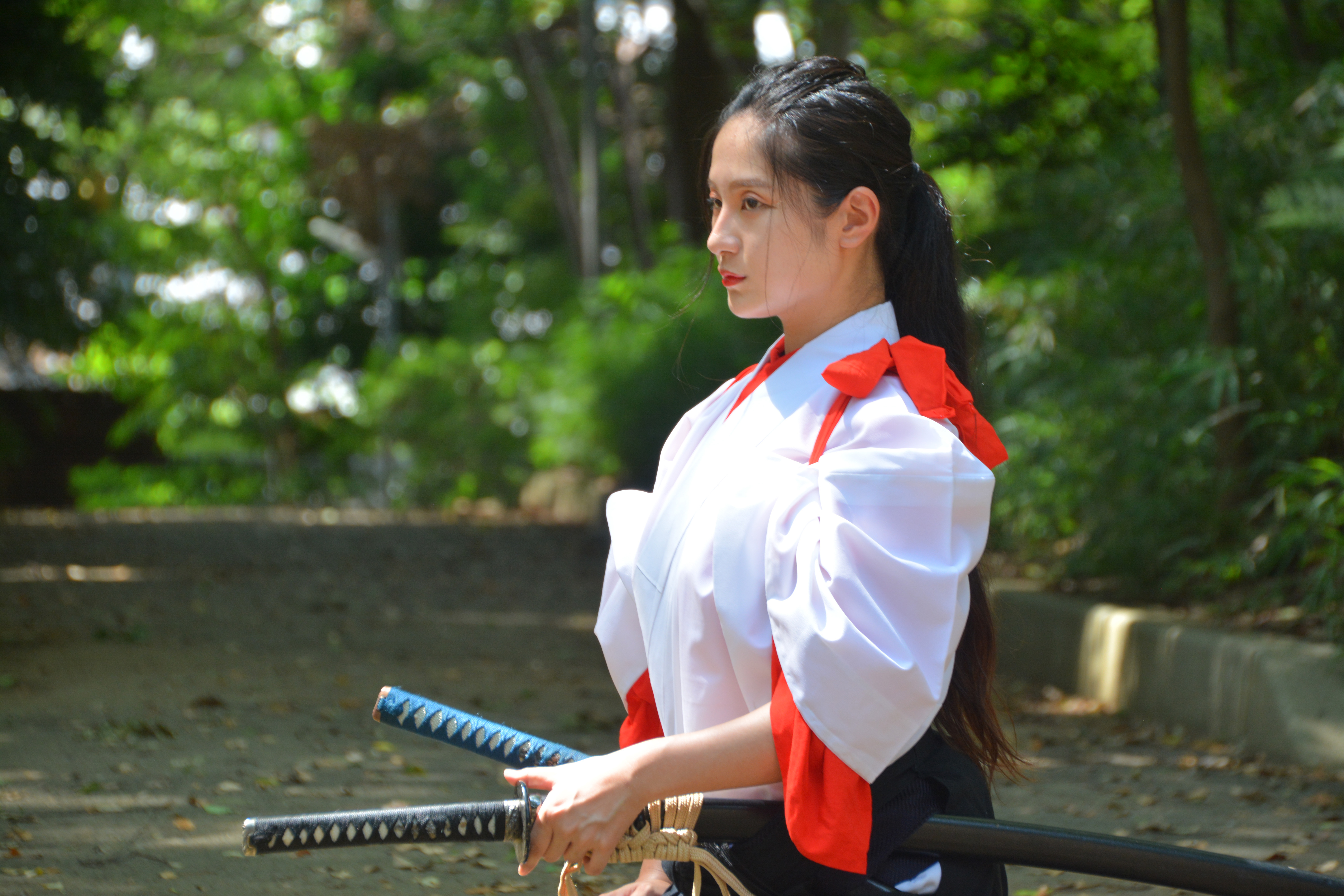 全集中の呼吸・殺陣・古武術・真剣・日本刀・精神統一・心を整える・無心・和装・武士・戦闘・戦い・バトル・殺陣・殺気・侍・護身術・決戦・決闘・時代劇・剣士・精神的・必殺技・刀・剣・サムライ女・姿勢・佇まい・やるき・ヤル気