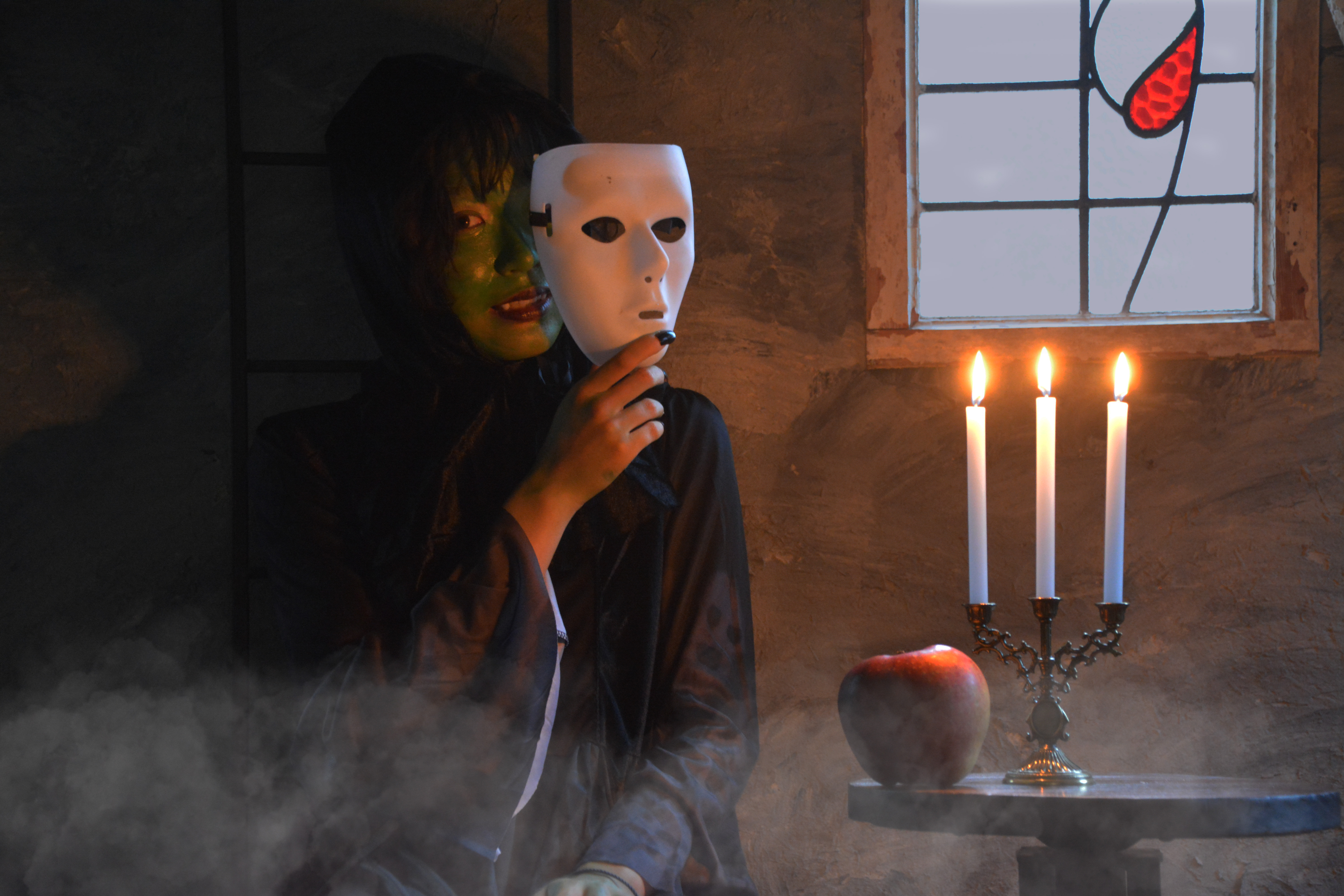 ハロウィン・ハロウィーン・ホラー・コスプレ・呪い・悪魔・魔法使い・ろうそく・ロウソク・ローソク・魔法・呪文・マスク・牙