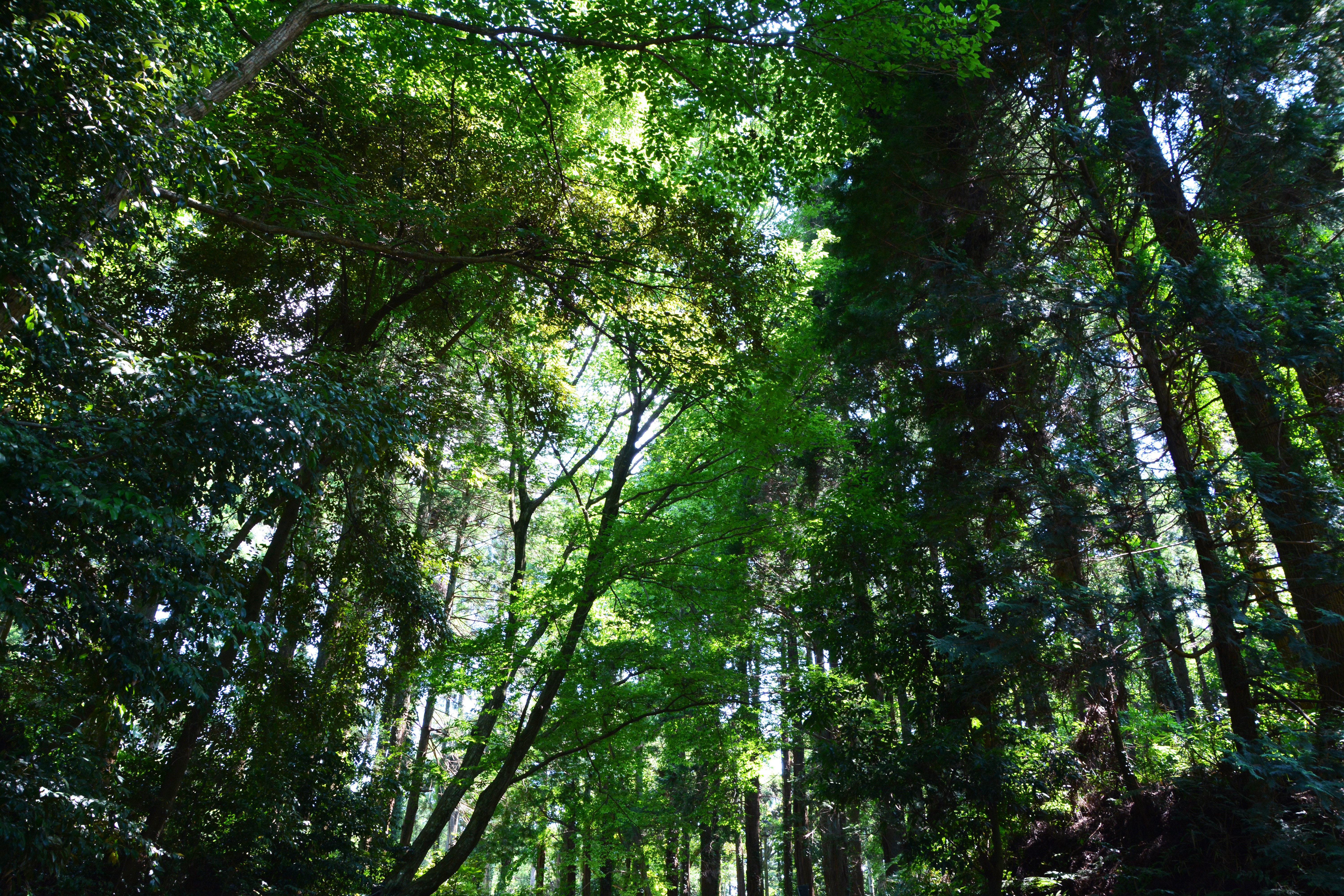 森・林・公園・森林浴、日差し・陽射し、太陽、木陰、こもれび・新緑のトンネル・初夏・山道・山林・冒険・探検・山登り