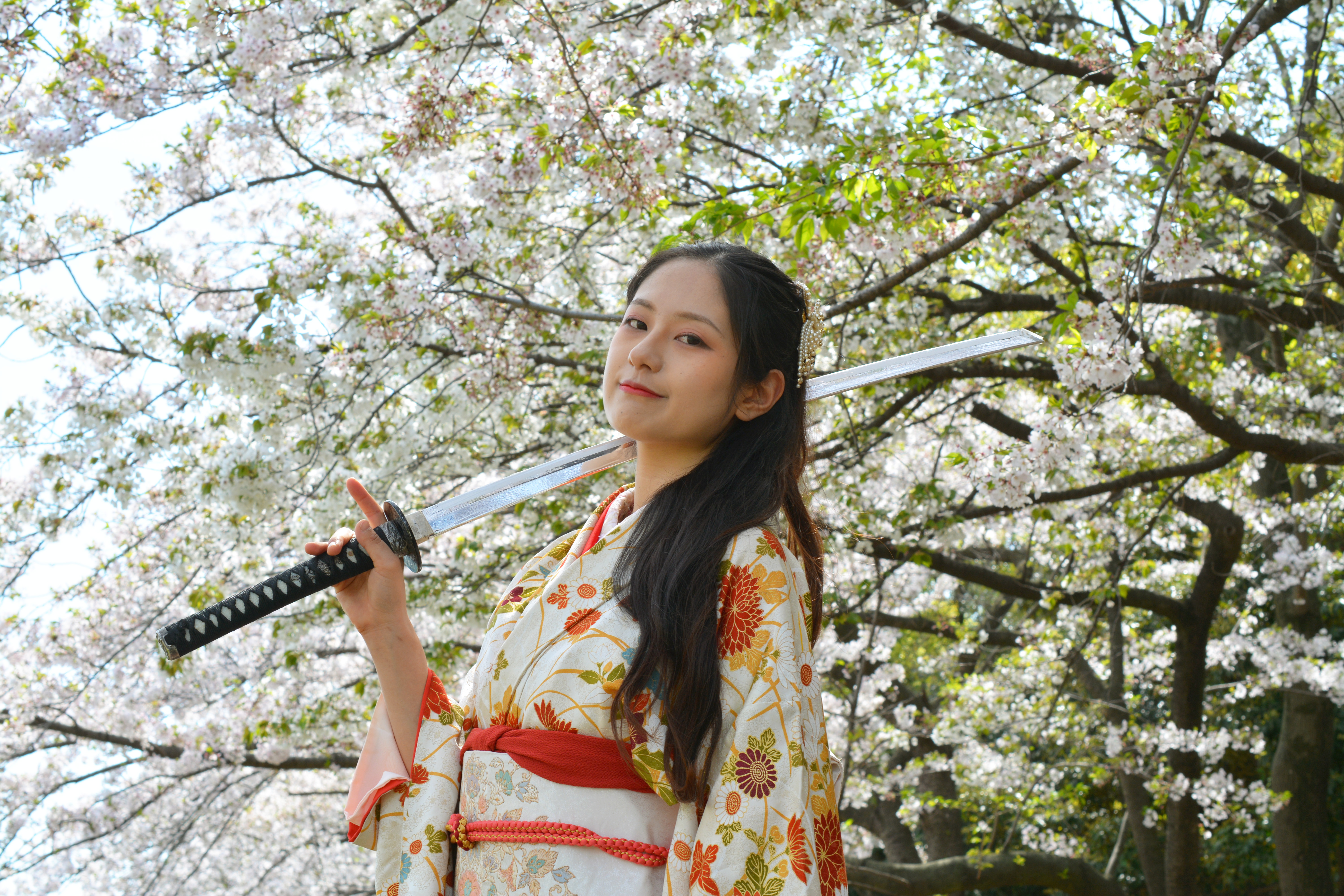 日本刀・和装・妖艶・武士・戦闘・戦い・バトル・殺陣・殺気・侍・美女・美魔女・コスプレ・微笑み・ほほえみ・不敵な笑み・決戦・決闘・江戸時代・時代劇・喧嘩上等・けんか(ケンカ)・虐め(いじめ・イジメ)カッコ悪い