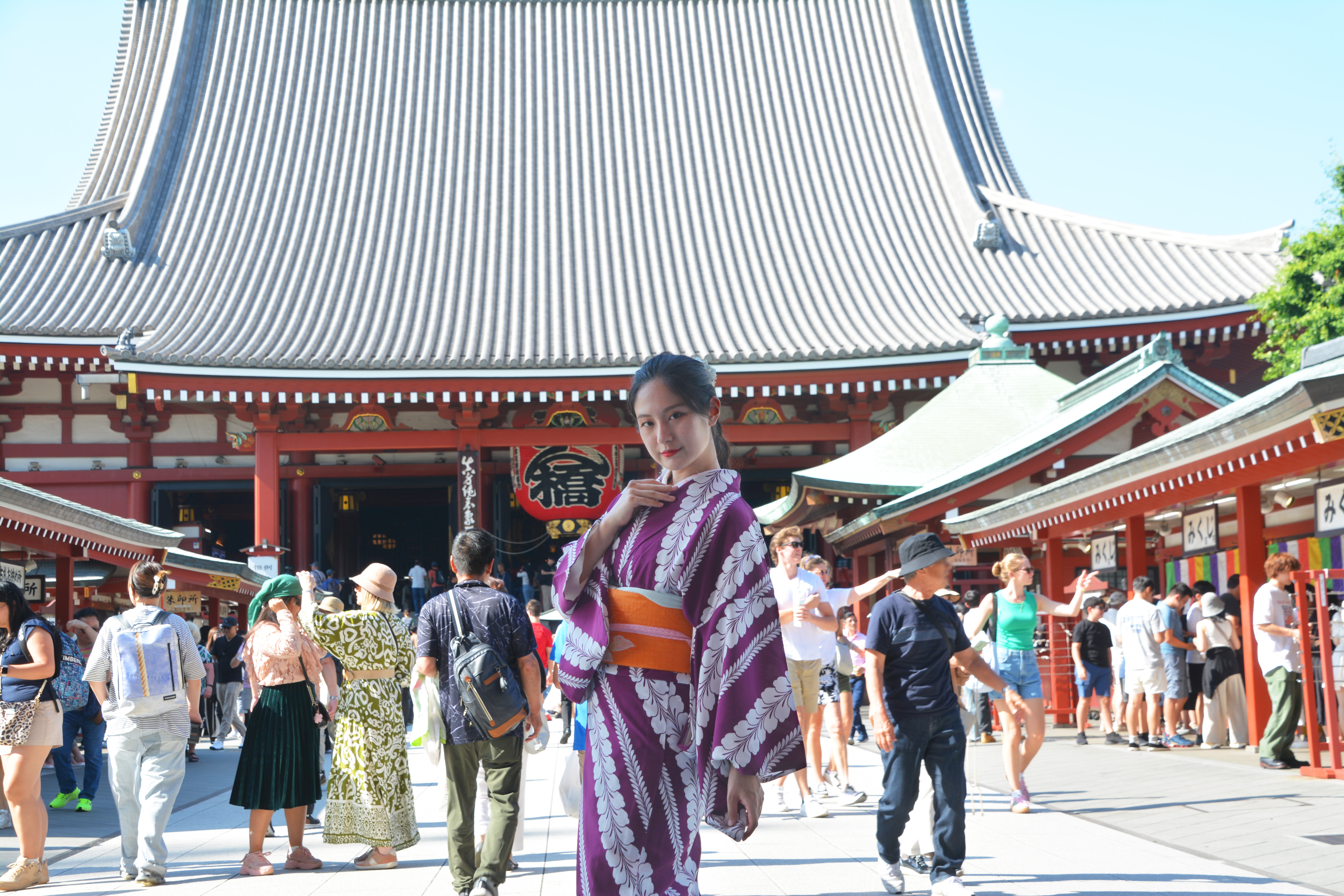 神社仏閣・お寺・着物・和服・決めポーズ・クールジャパン・東京・日本・大和撫子・なでしこ・江戸・記念写真・境内