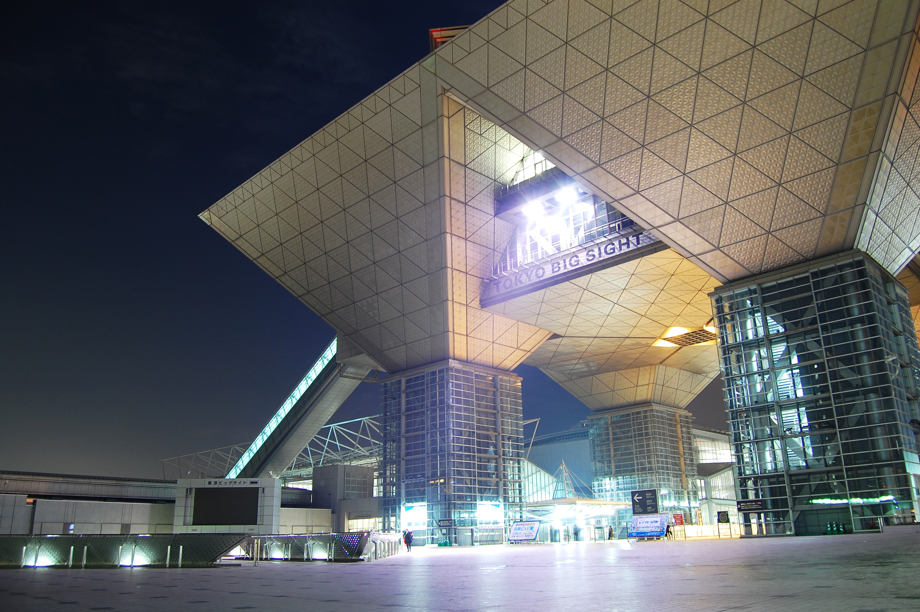 夜の東京ビッグサイト。国際展示場、イベント会場