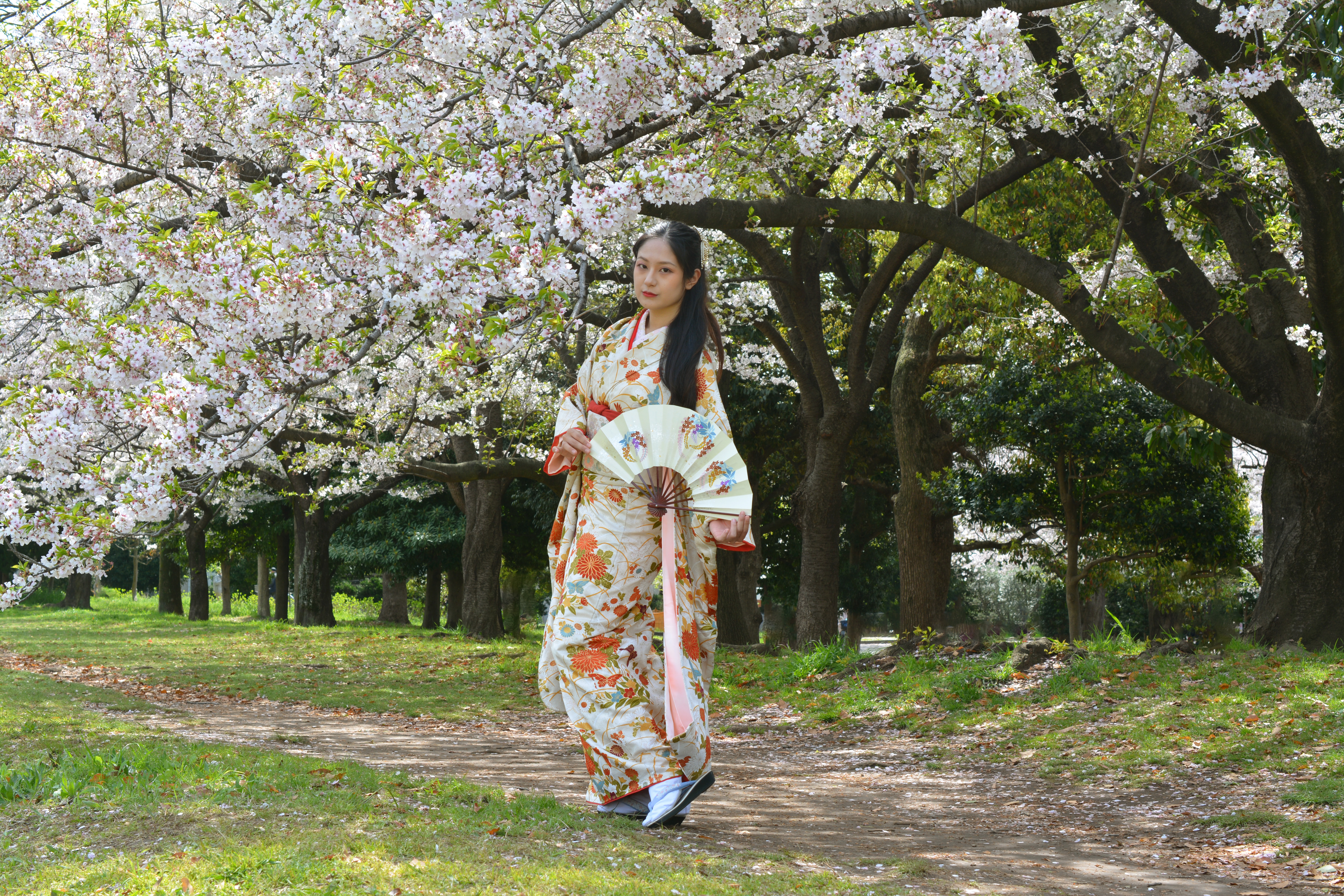和服・桜・春・センス・きもの・和装・妖艶・美女・美魔女・コスプレ・江戸時代・時代劇・大和撫子・やまとなでしこ・黒髪の女性・ロングヘアー