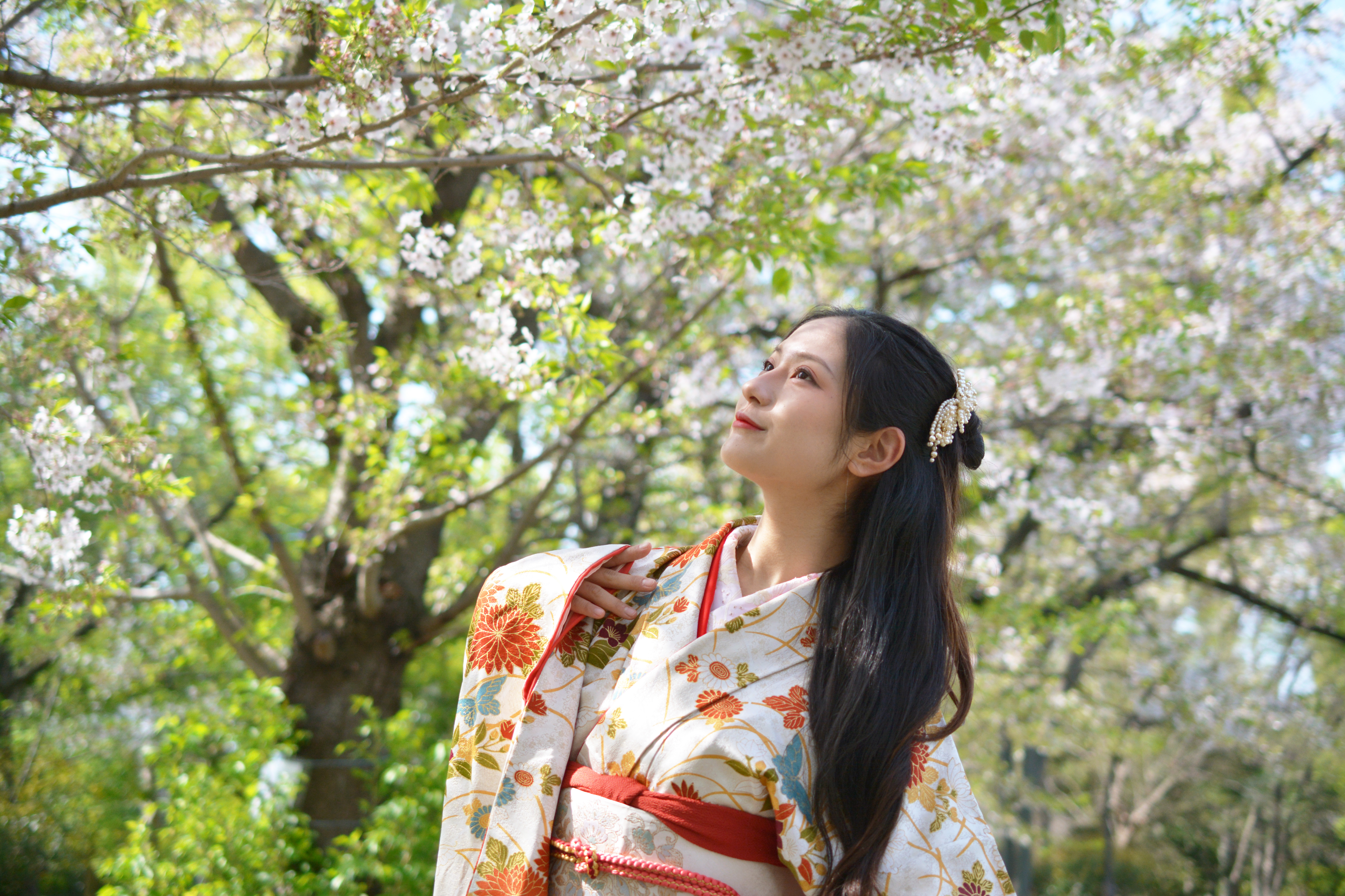 夢・希望・明るい未来・桜・春・さくら・サクラ・和風・女性・和服美人・大和撫子・やまとなでしこ・きもの・和装・美女・美魔女・コスプレ・江戸時代・時代劇・覚悟・凛々しい目・瞳・お花見・はにかむ・恋愛・失恋・恋心・乙女心・べっぴんさん