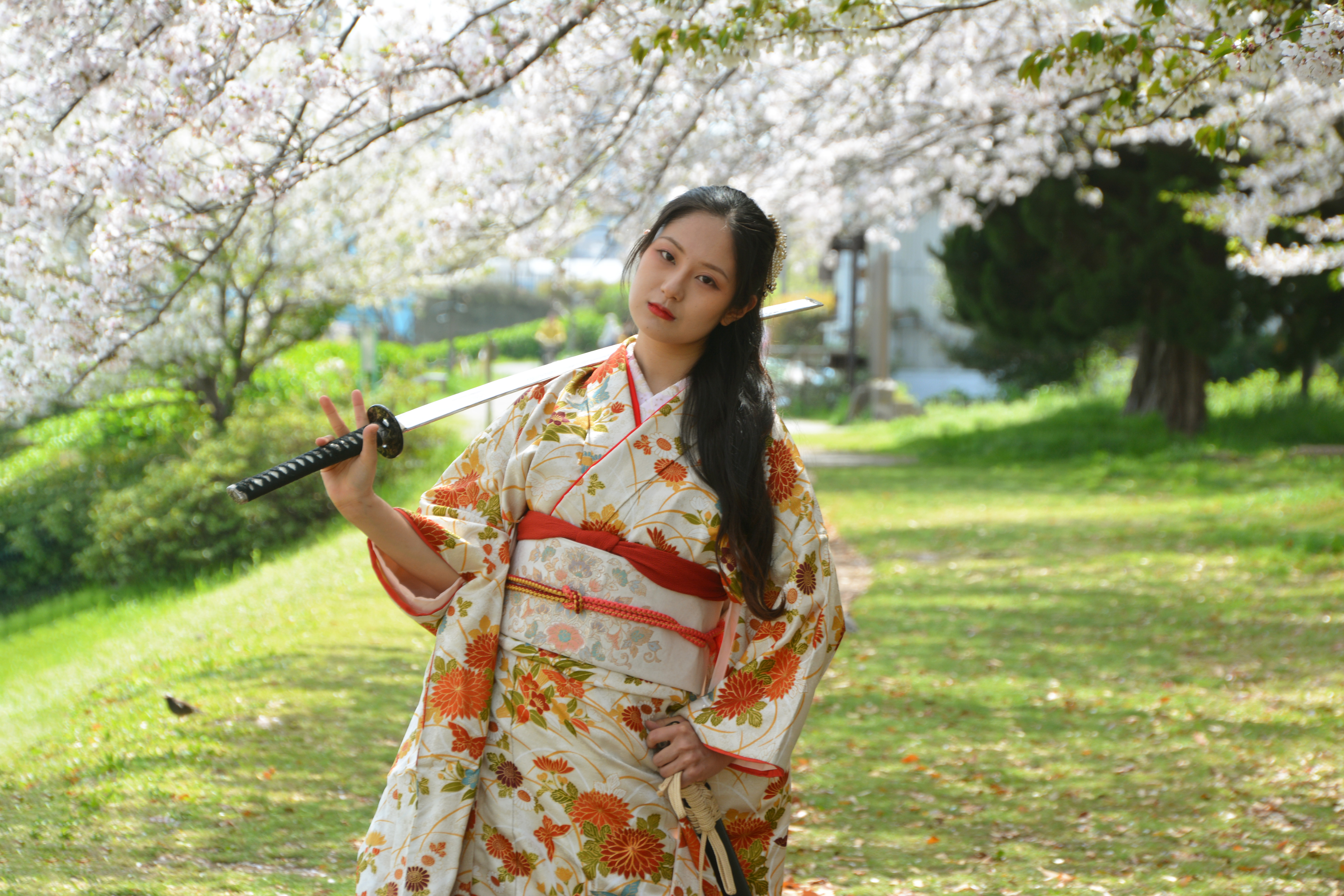 日本刀・和装・妖艶・武士・戦闘・戦い・戦う・バトル・殺陣・殺気・侍・美女・美魔女・コスプレ・微笑み・ほほえみ・不敵な笑み・決戦・決闘・江戸時代・時代劇・喧嘩上等・けんか(ケンカ)・虐め(いじめ・イジメ)カッコ悪い・和服(着物)と日本刀・女侍・勝負・極道