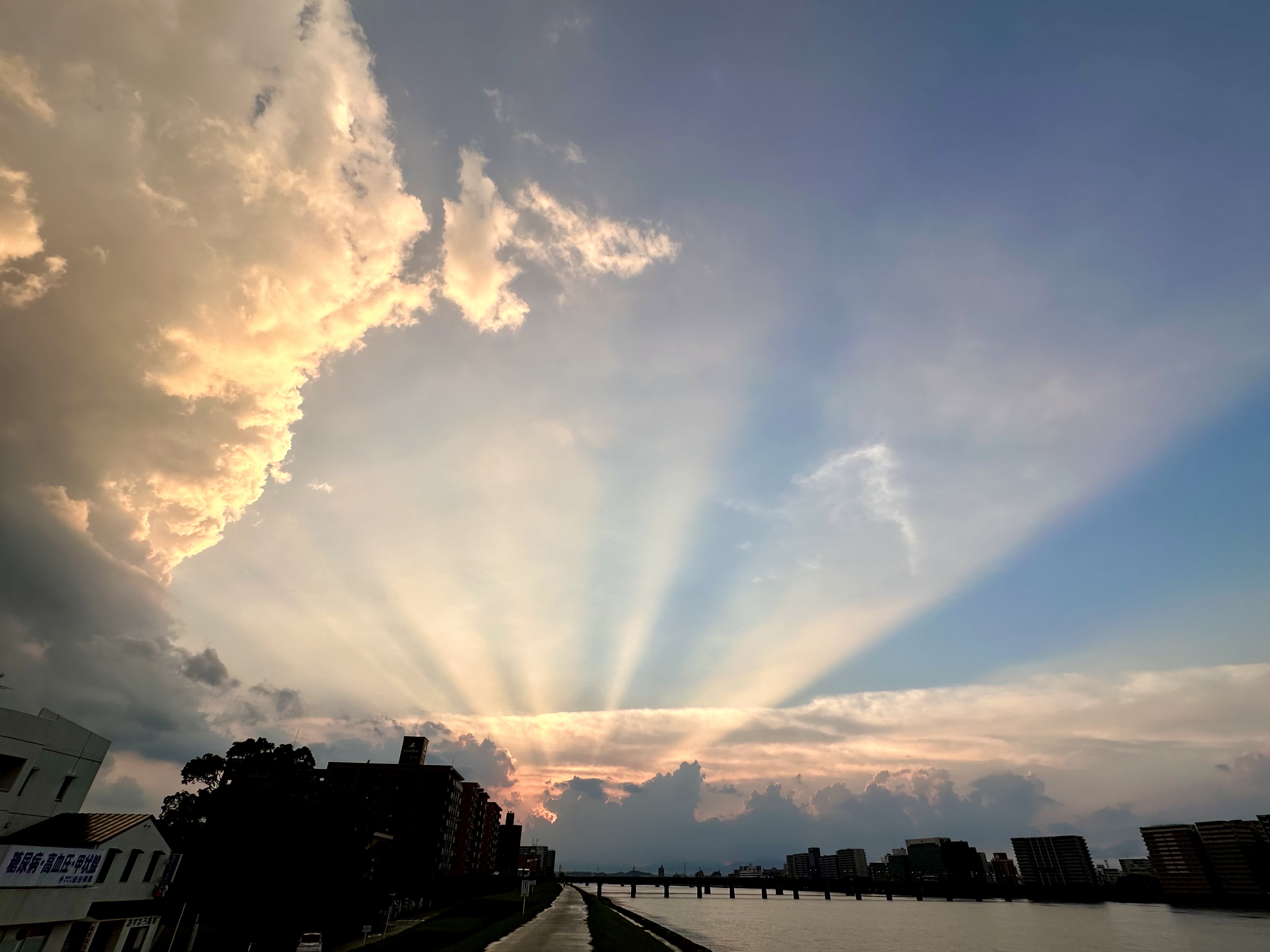 自然現象・天体・天気・神秘的・天空・雲・光と影・光芒・薄明光線&夕暮れ彩雲・夕日・夕陽・スピリチュアル・開運・幸運・幸福・運命・導き・奇跡・希望の光