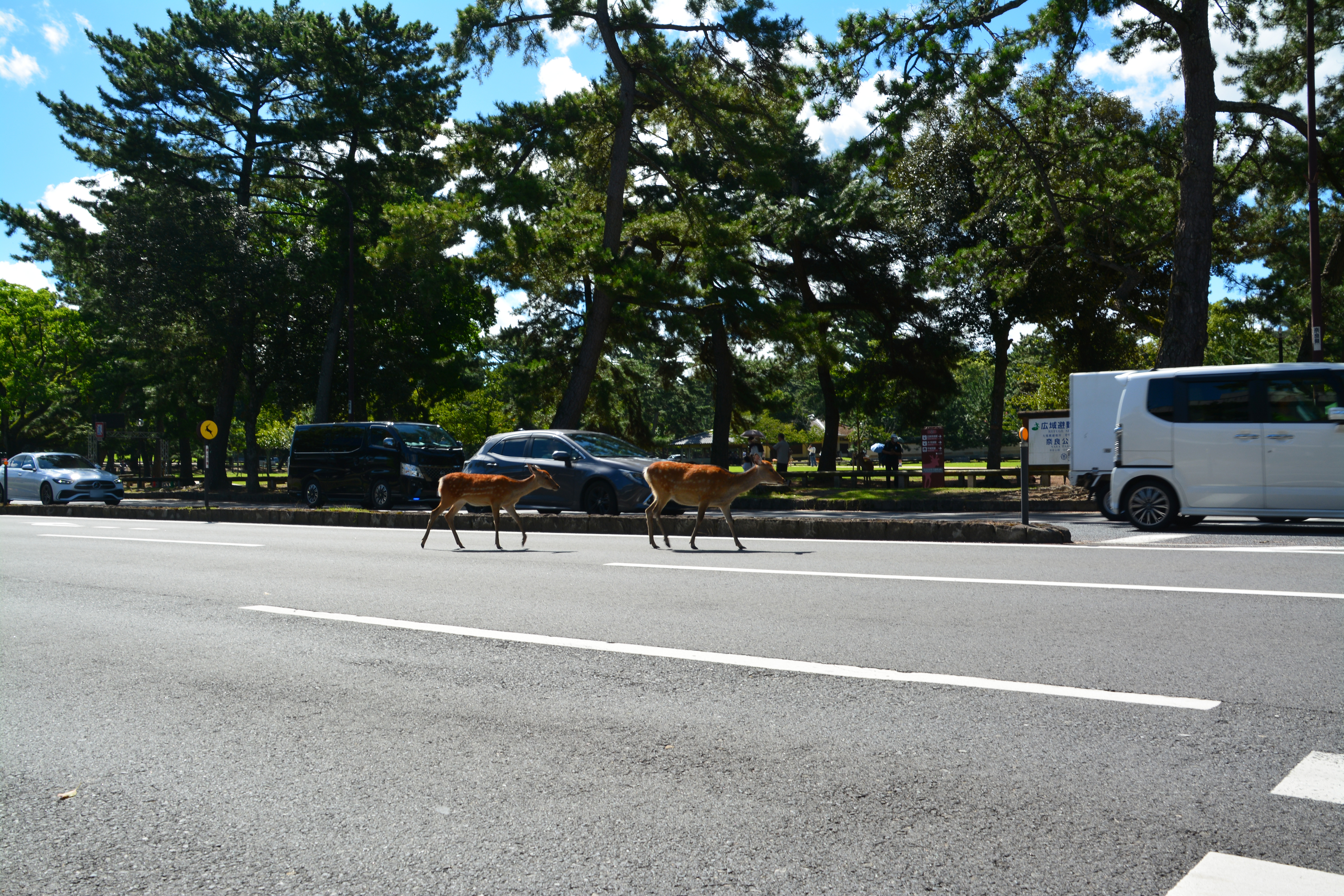 しか・練り歩く・闊歩する・奈良公園・野生動物・横断歩道・信号無視・隊列・徒歩・ウォーキング