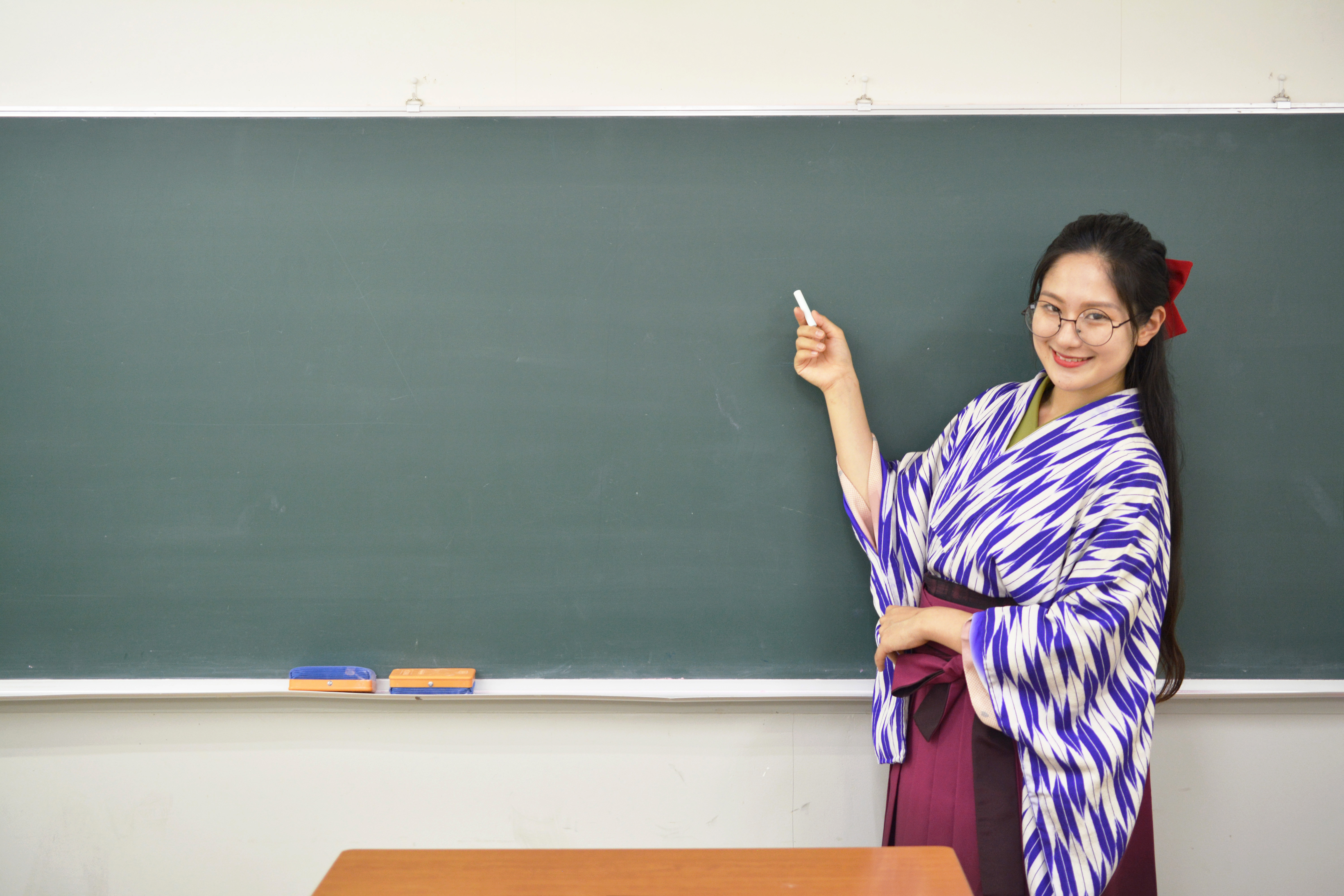 丸メガネ女子・成績・勉強・優等生・天才少女・眼鏡(めがね)・受験・合格祈願・袴姿・女学生・女子学生・昭和レトロ・大正ロマン・授業・学習塾・学校・先生・女教師