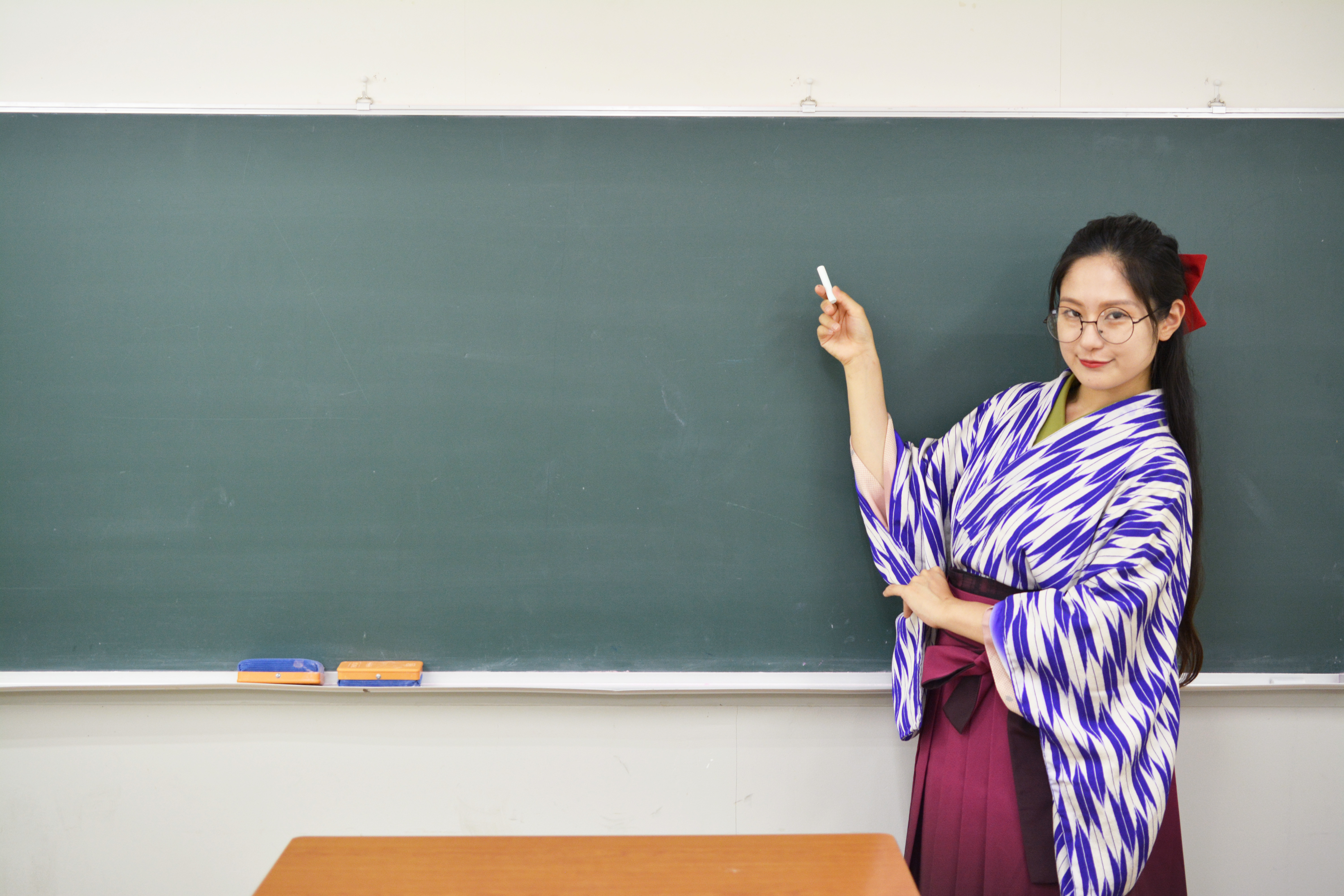 丸メガネ女子・成績・勉強・優等生・天才少女・眼鏡(めがね)・受験・合格祈願・袴姿・女学生・女子学生・昭和レトロ・大正ロマン・授業・学習塾・学校・先生・女教師