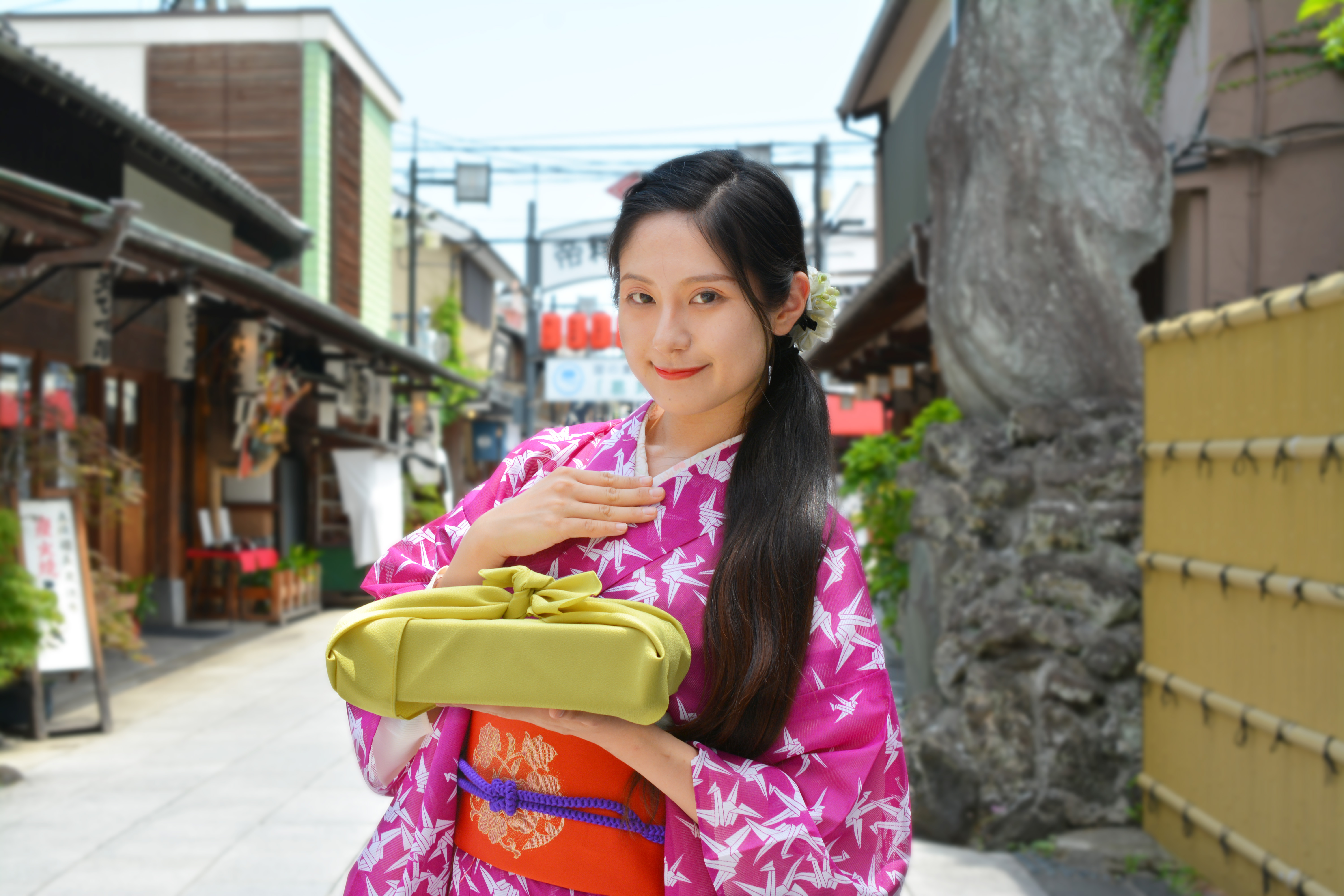 お土産・贈呈・贈り物・風呂敷包み・小包み・風呂敷・御中元・御歳暮・着物・和服・和装・暑中見舞い