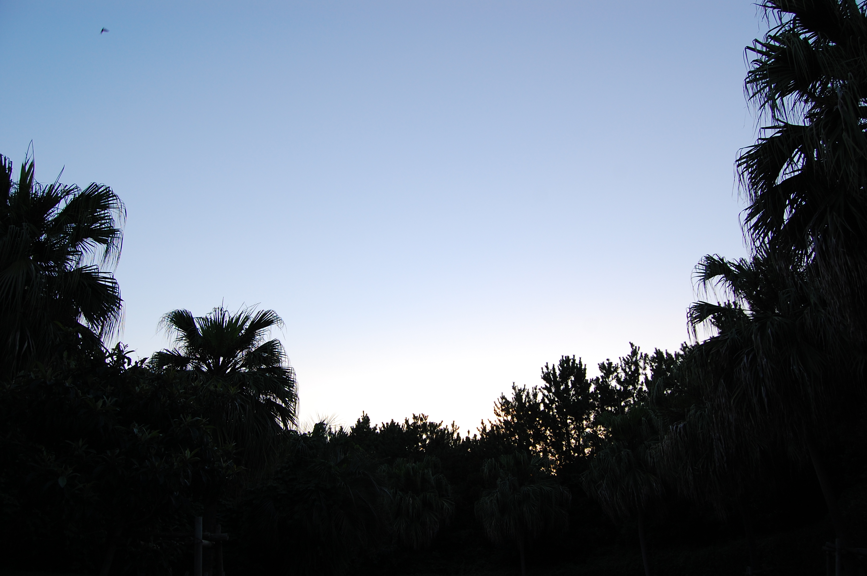 ジャングルの山奥ですが、夜明け前の明るくなり始めたころ。