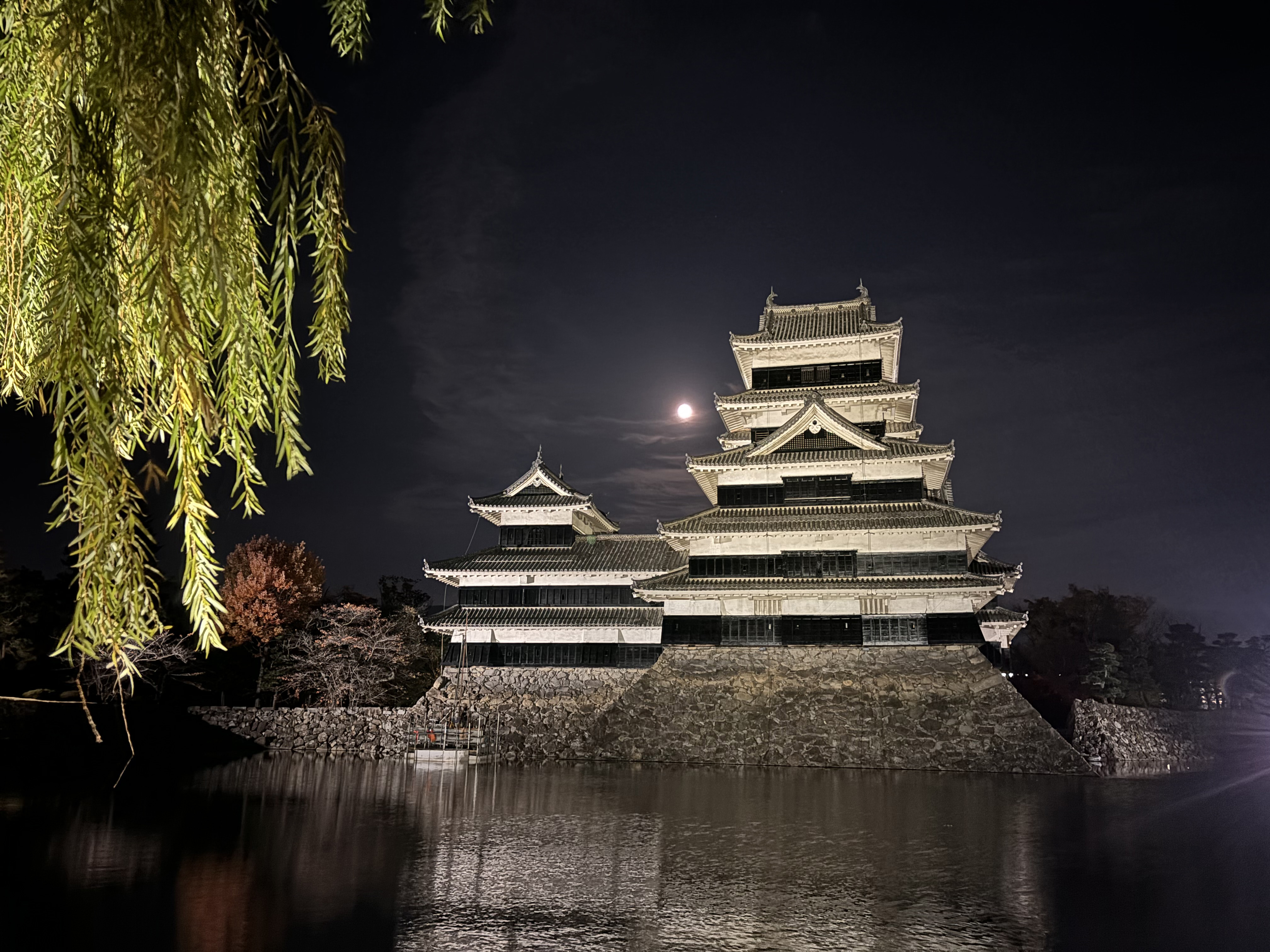 松本城・出陣・決闘・天守閣の夜景・魔王・殿・敵・ラスボス・天守閣・お城・歴史・戦国物語・長野県・武士・夜景・ライトアップ・月夜・満月・決戦・戦い・闇・真夜中・月夜・夜空