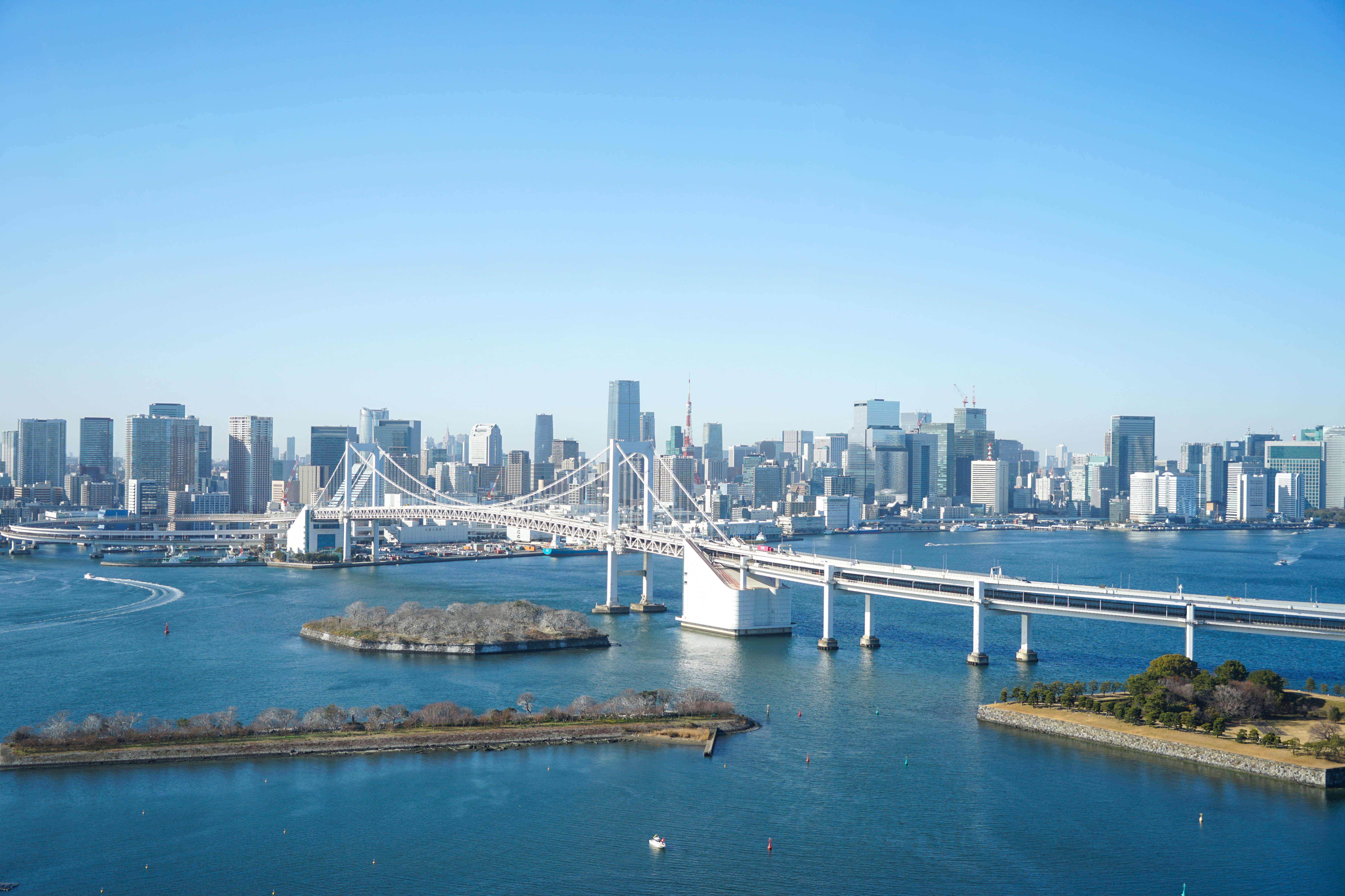 東京都市・ビジネス・都会・橋・見晴らし・景色・眺め・湾岸エリア・お台場・経済成長・吊り橋・快晴・東京タワー