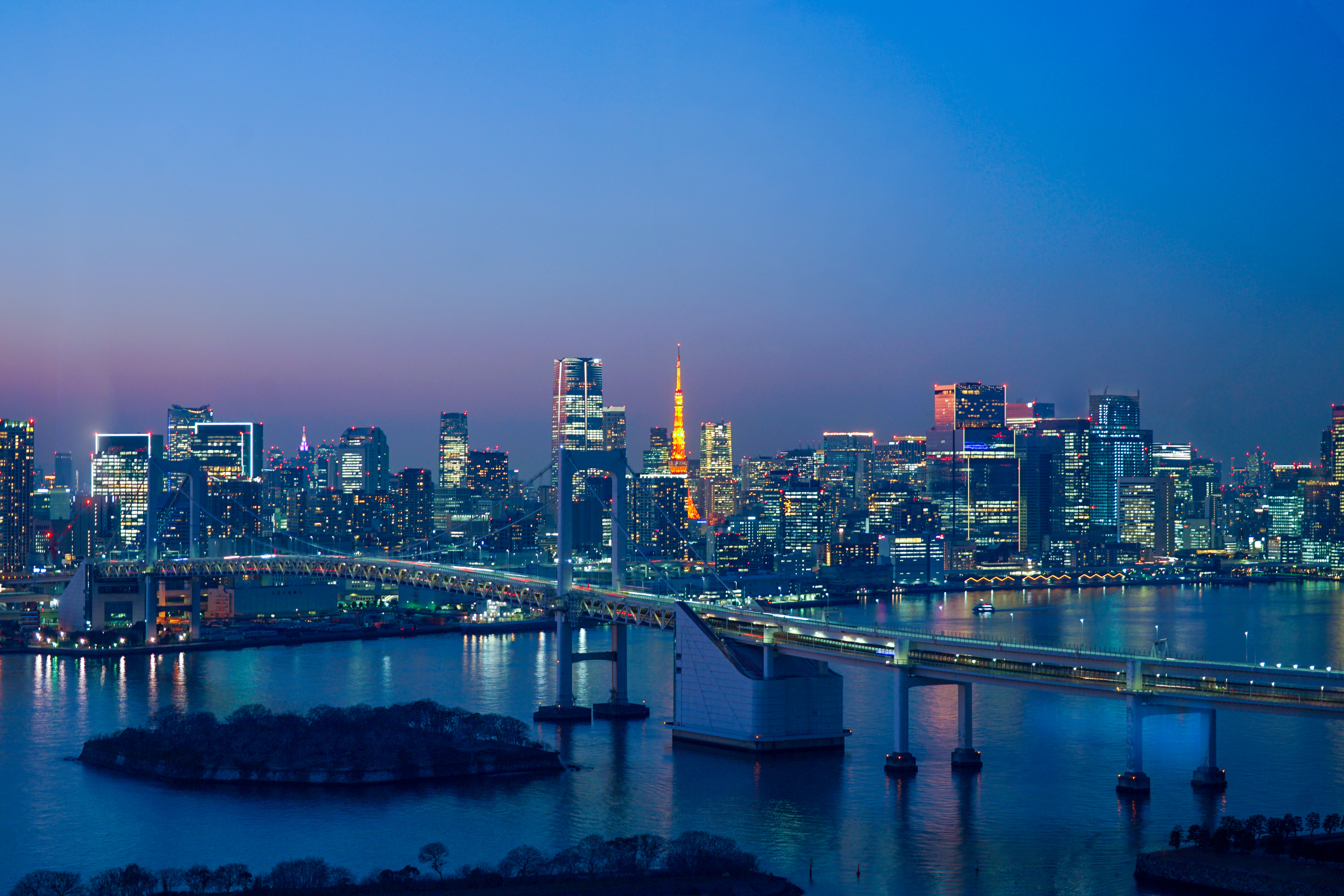 東京都市・ビジネス・都会・橋・見晴らし・景色・眺め・湾岸エリア・お台場・経済成長・吊り橋・快晴・東京タワー