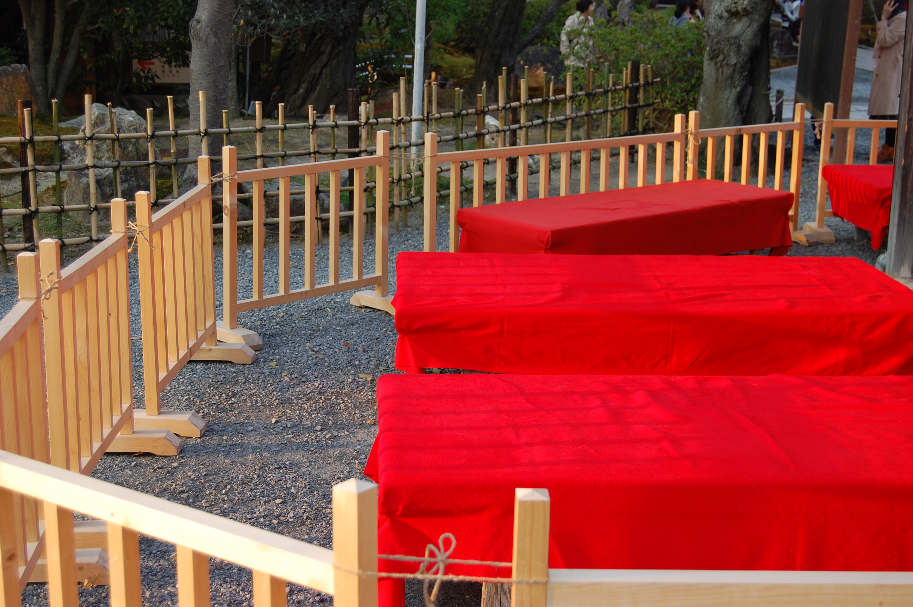 赤い腰掛け・京都・お江戸・お茶屋さんの縁側・和菓子・饅頭