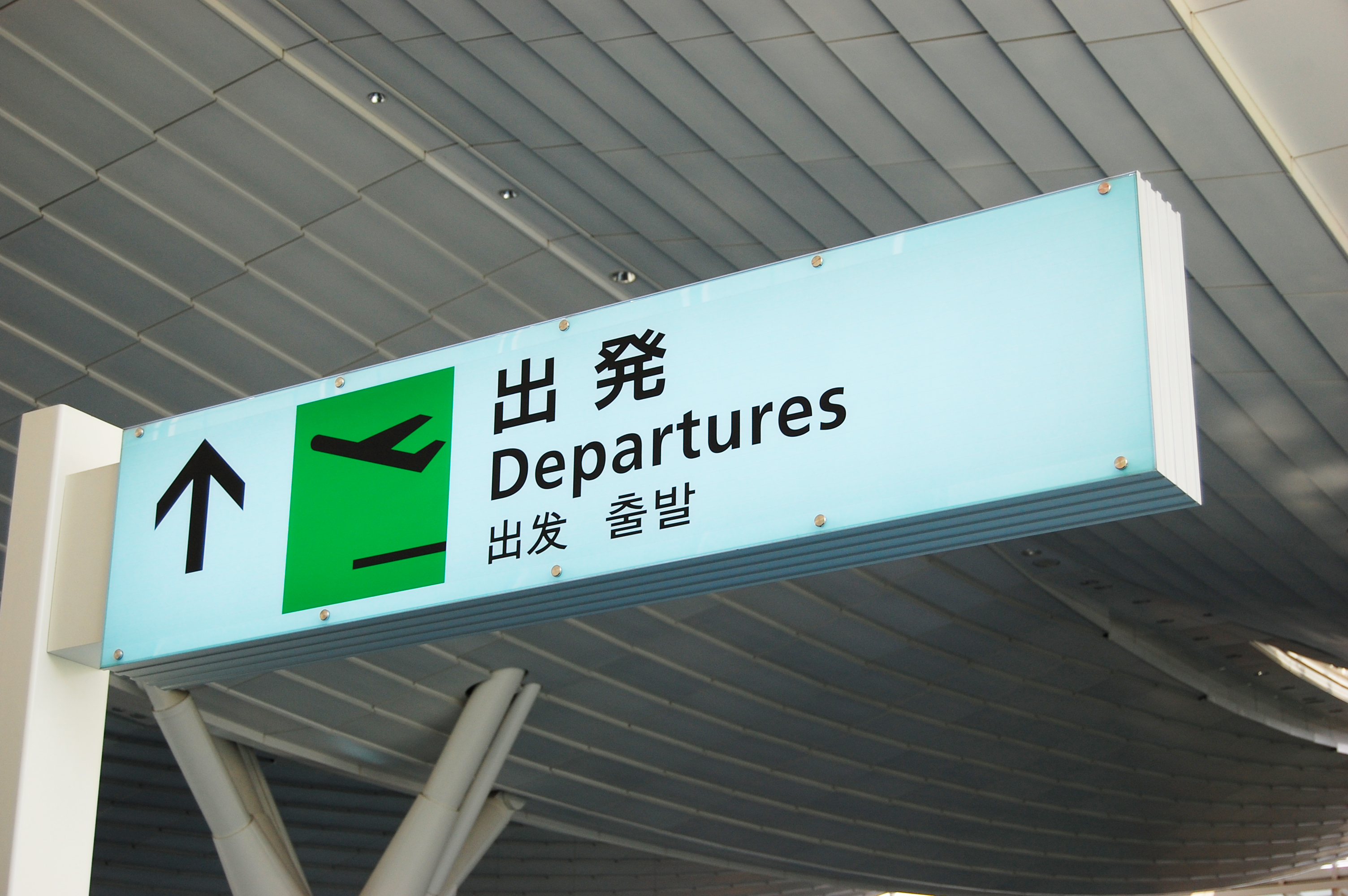 空港、「出発」の看板2