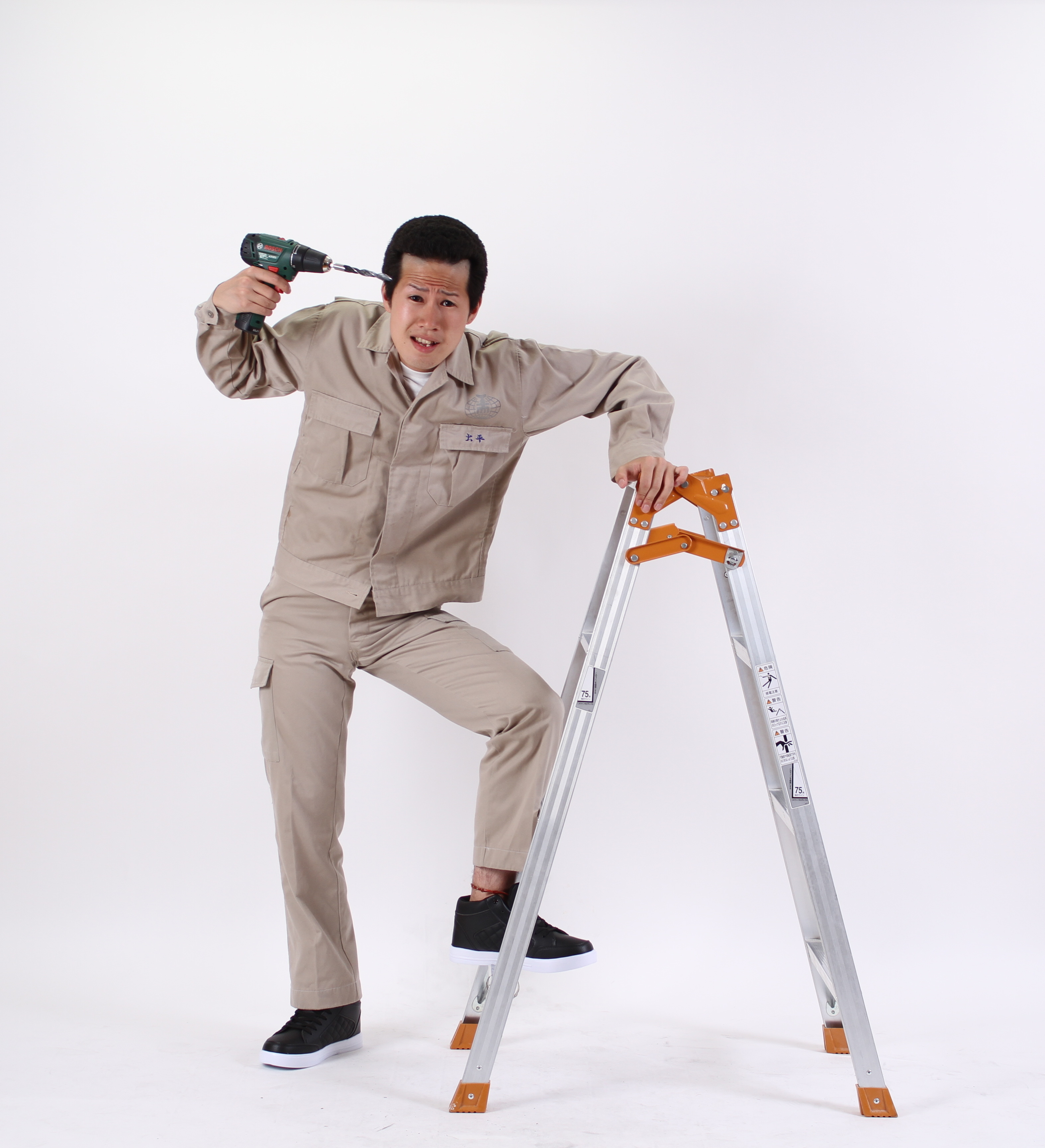 作業着,働くお父さん・工事現場・力仕事・危険人物・変態・不審者・ドリル・よいこ・マネ・安全・危険・危機管理・事故・間違う・間違い・使い方