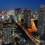 都会の高層ビル群とハイウェイの夜景