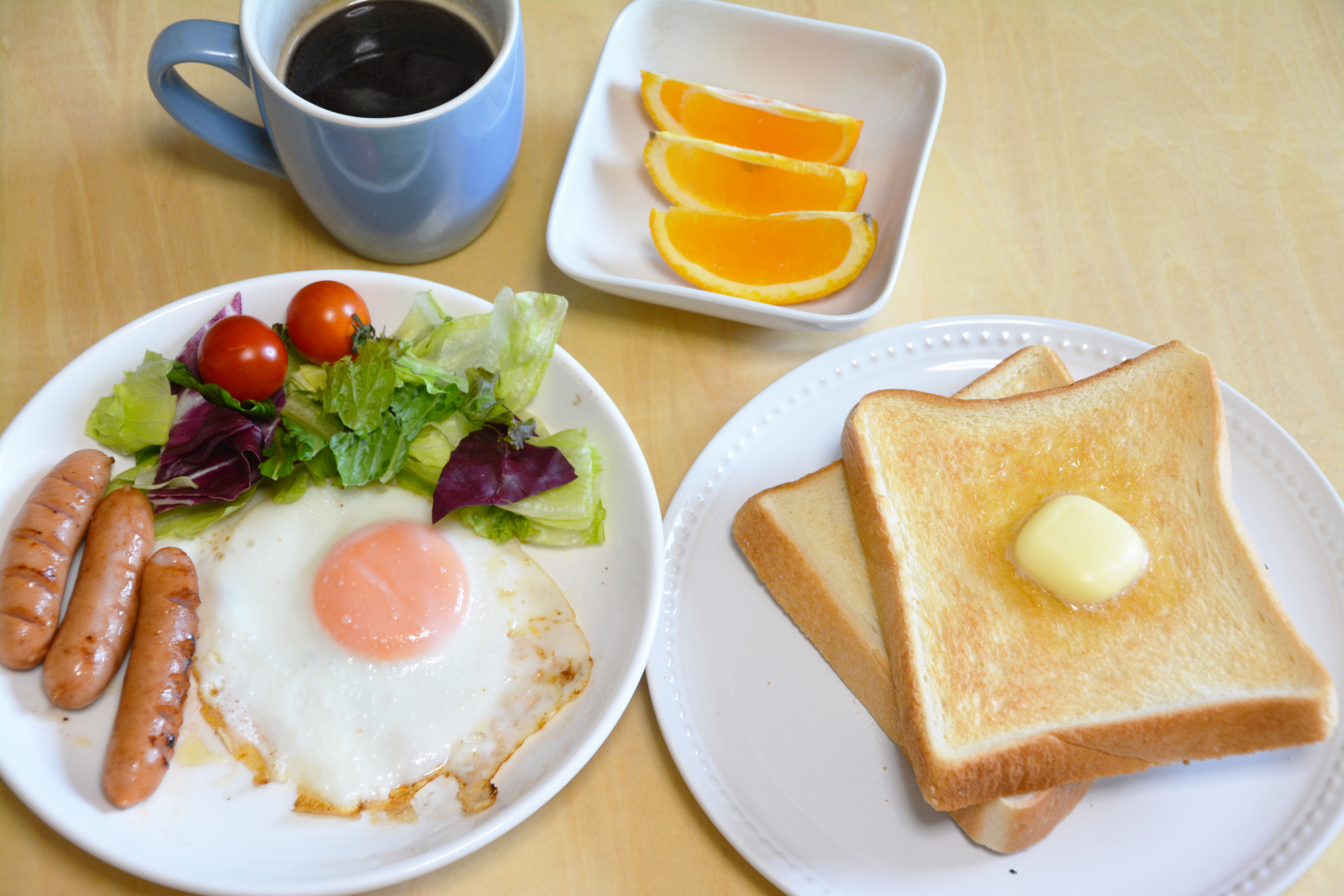 食パン・コーヒー・ウィンナーソーセージ・食事・朝食のイメージ素材・バター・マーガリン・珈琲・ウインナー