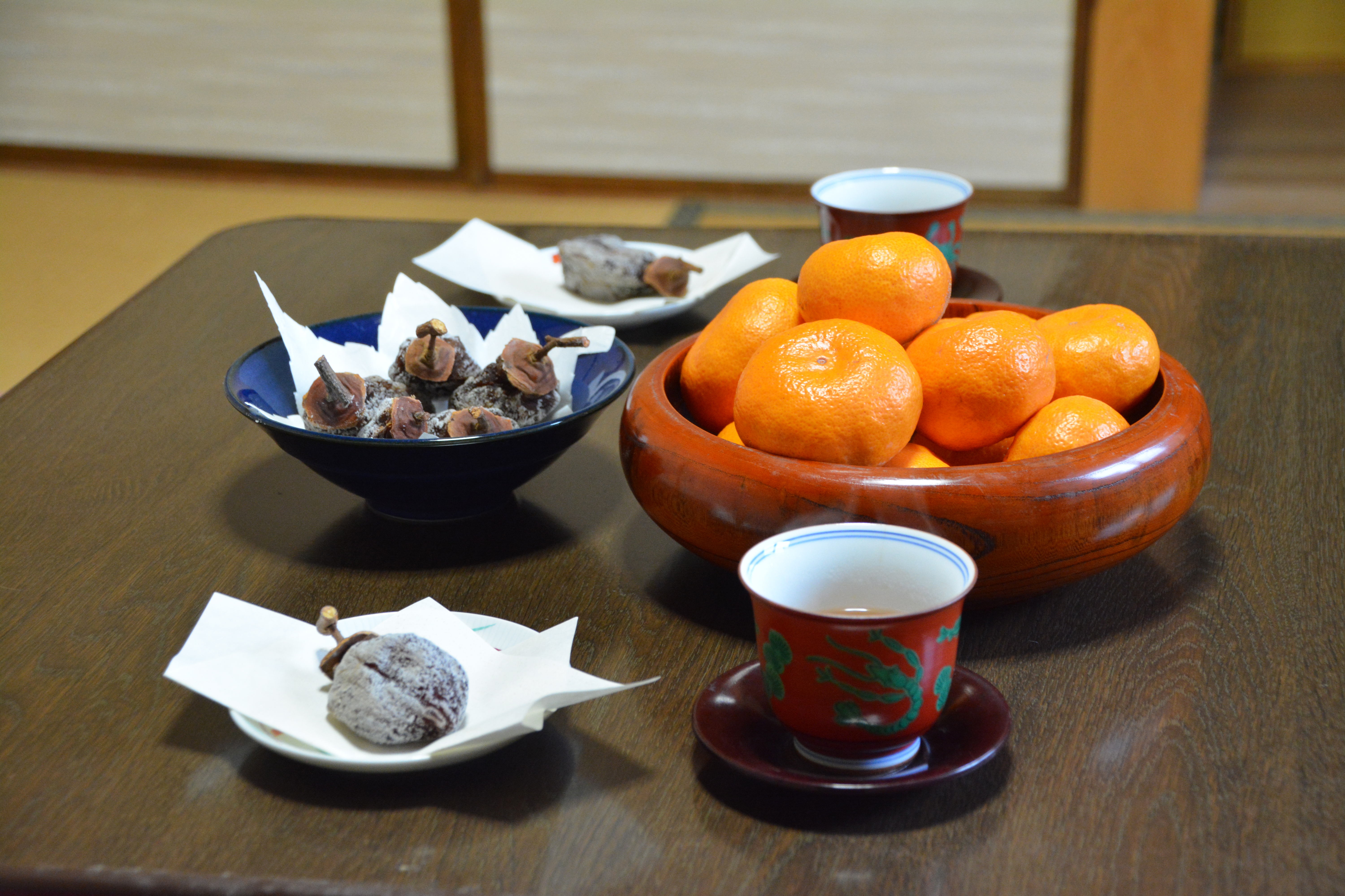 お茶菓子・炬燵(コタツ)・冬・暖房器具・和室・昭和・ミカン・みかん・蜜柑
