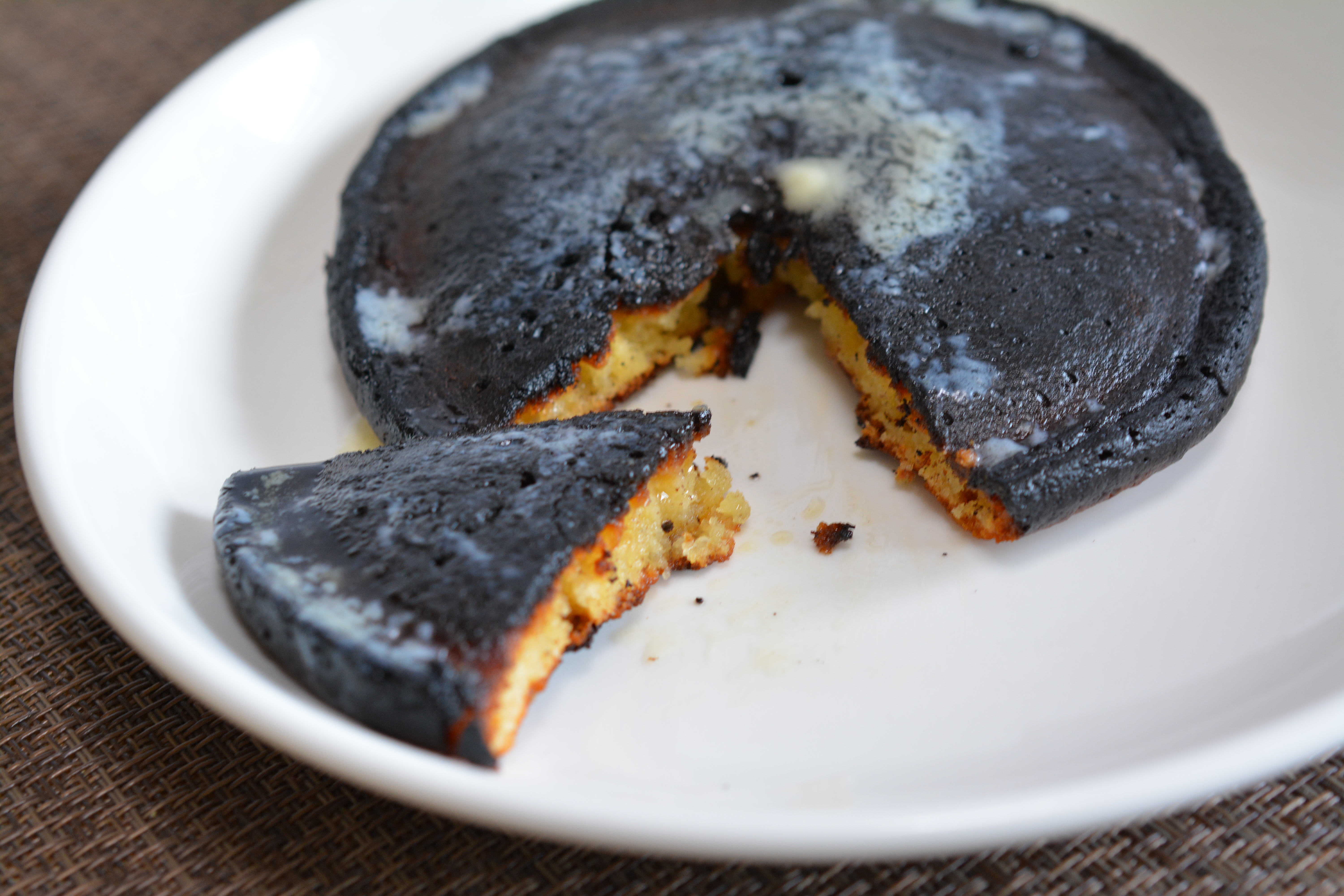 ホットケーキ焦げたけど中は何とか食える