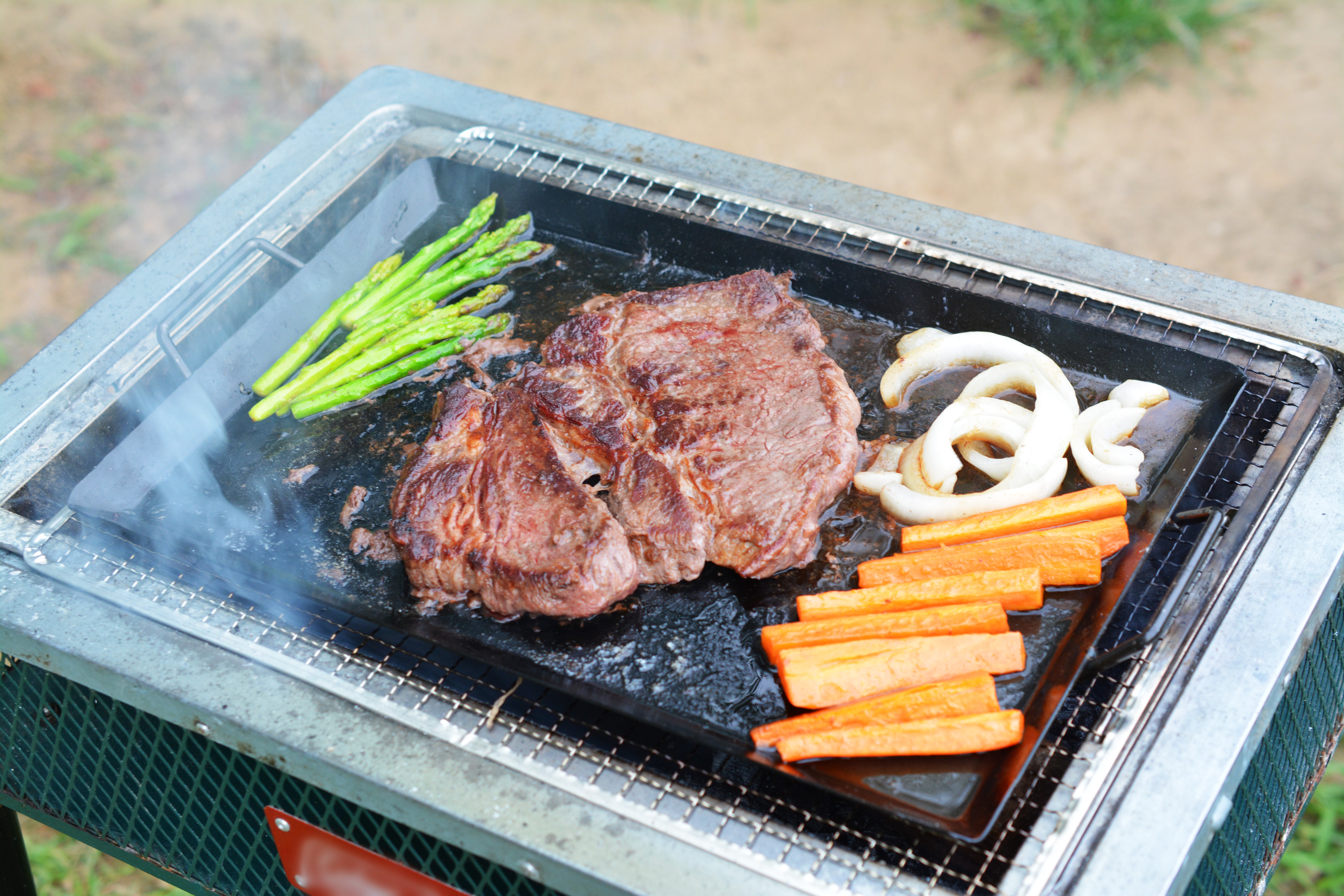 キャンプ飯・アウトドア・ステーキ・バーベキュー・BBQ(bbq)・肉・カロリー・焼肉・焼き肉・炭火・焦げ目・鉄板焼き・煙