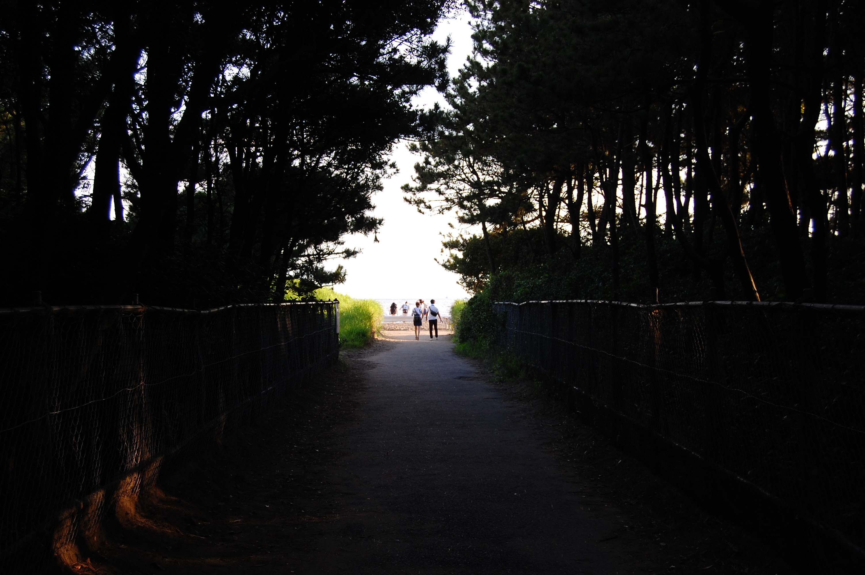 木々のトンネル。ここを抜けたら海。