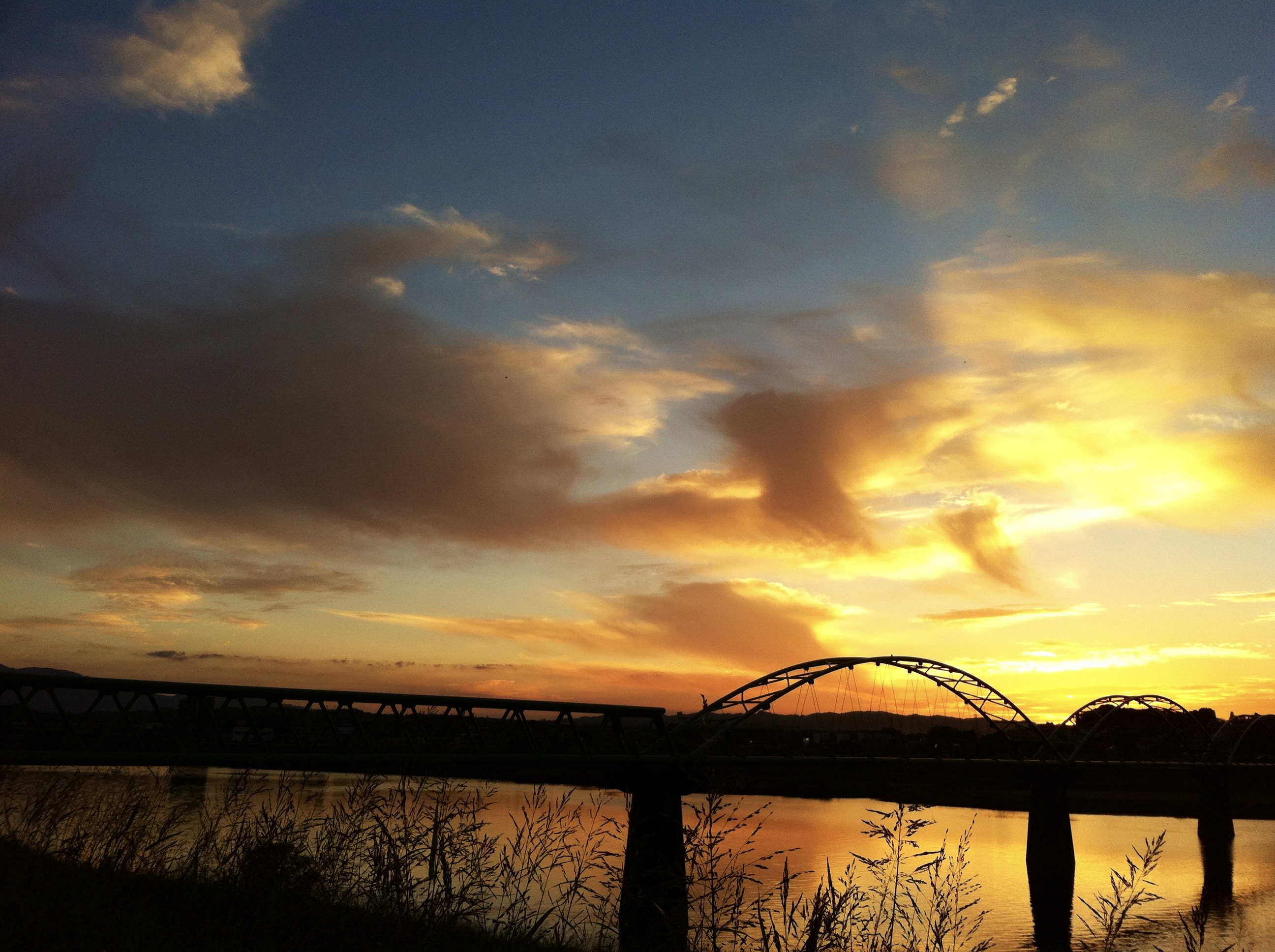川・河川・橋・シルエット・夕焼け空・朝焼け・夕陽・朝陽・太陽・日の出・夕暮れ・黄昏