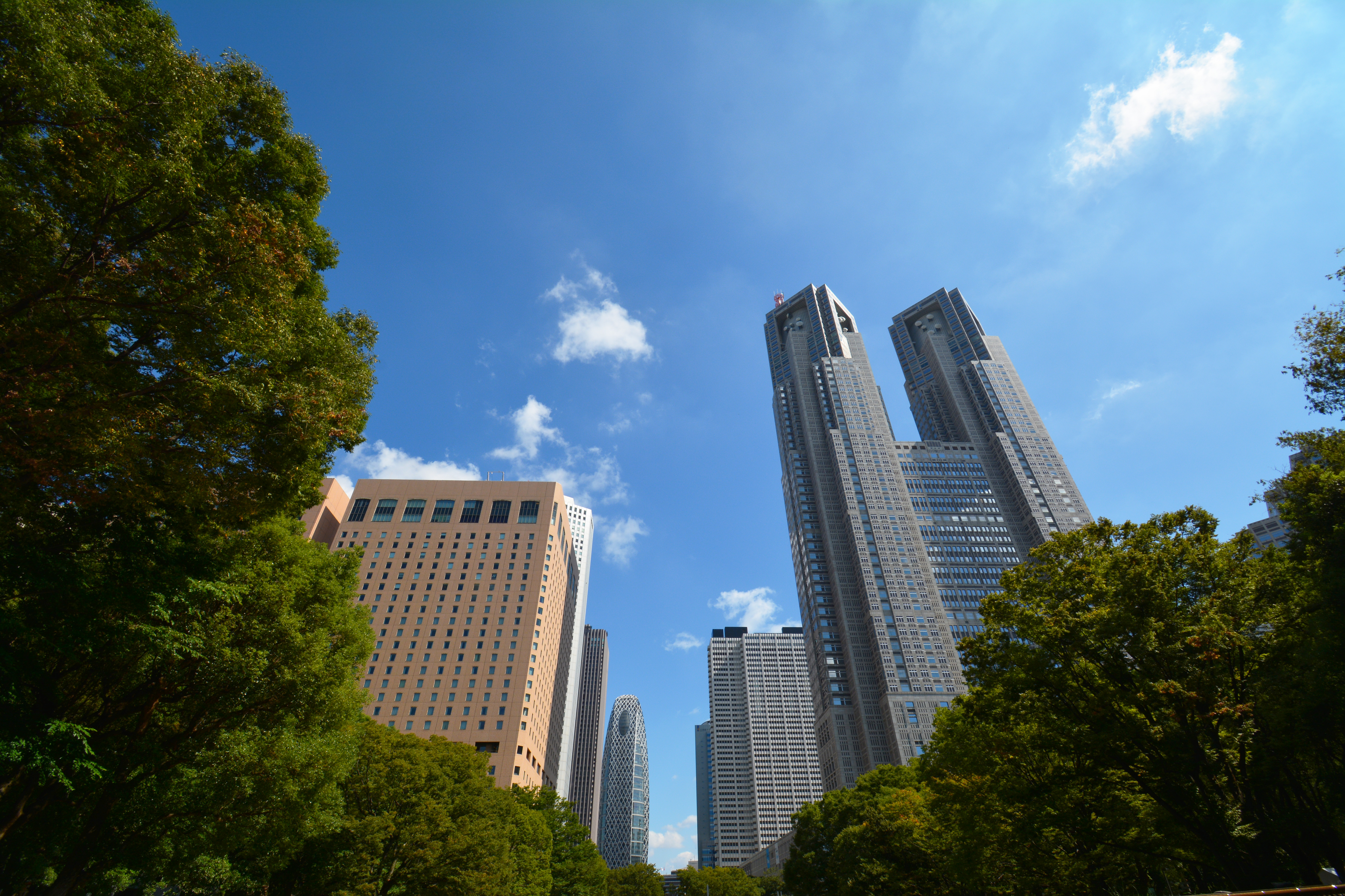 見上げた都庁と青空