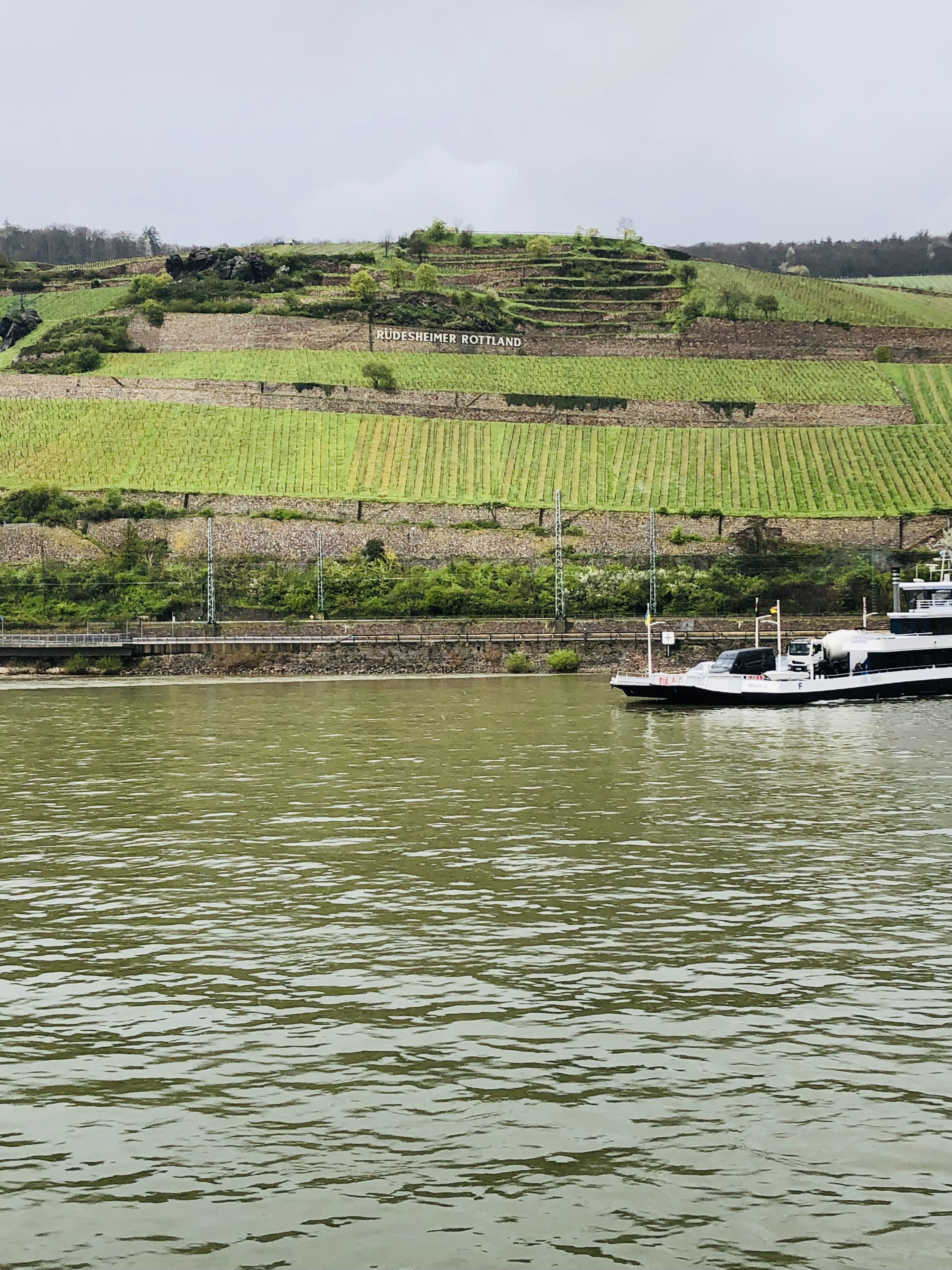 クルーズ船の旅・船旅・ドイツの田舎町・田園風景・野原、ライン川クルーズ・河川・ボート・大自然・欧米・西洋・外国の景色