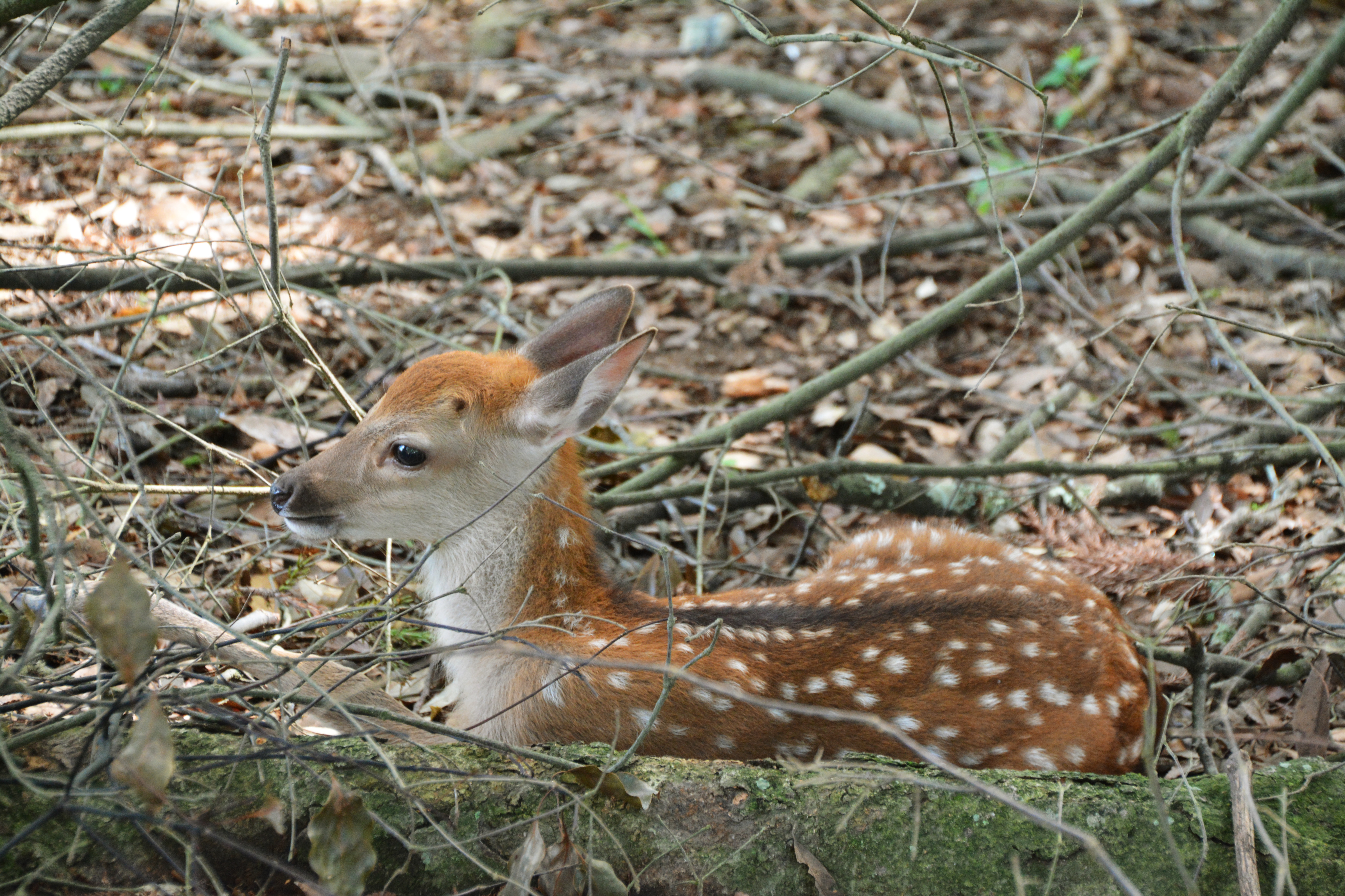 かわいい子鹿・シカ・しか・奈良公園・カワイイ・可愛い・子供・子ども・こども・おててないない、小鹿・子鹿(しか・シカ)・つぶらな瞳・あどけない顔・あどけなさ・身をひそめる・身を隠す・隠れる・休憩・一休み・休息